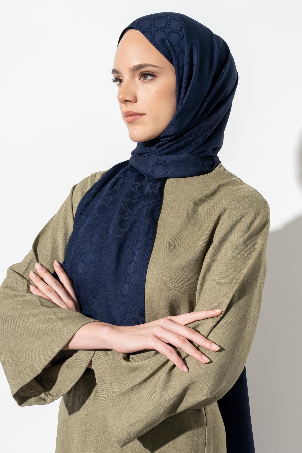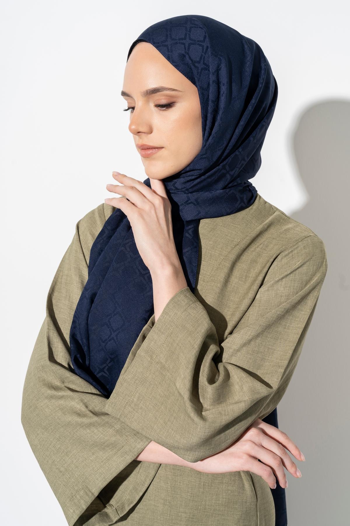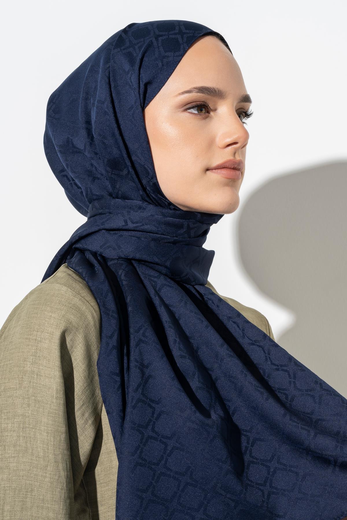 Kadın Geometrik Desen Jakarlı Şal LACİVERT