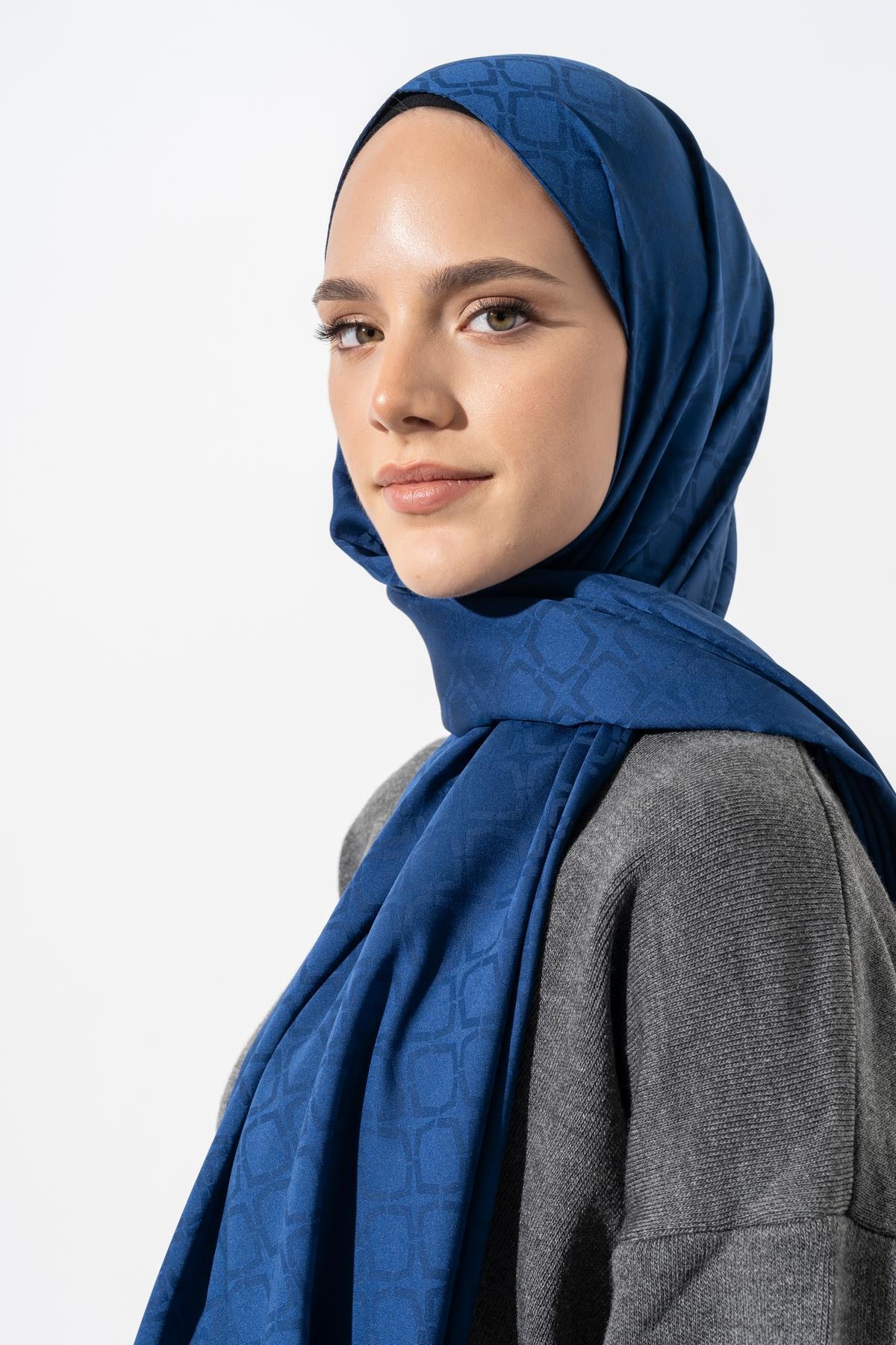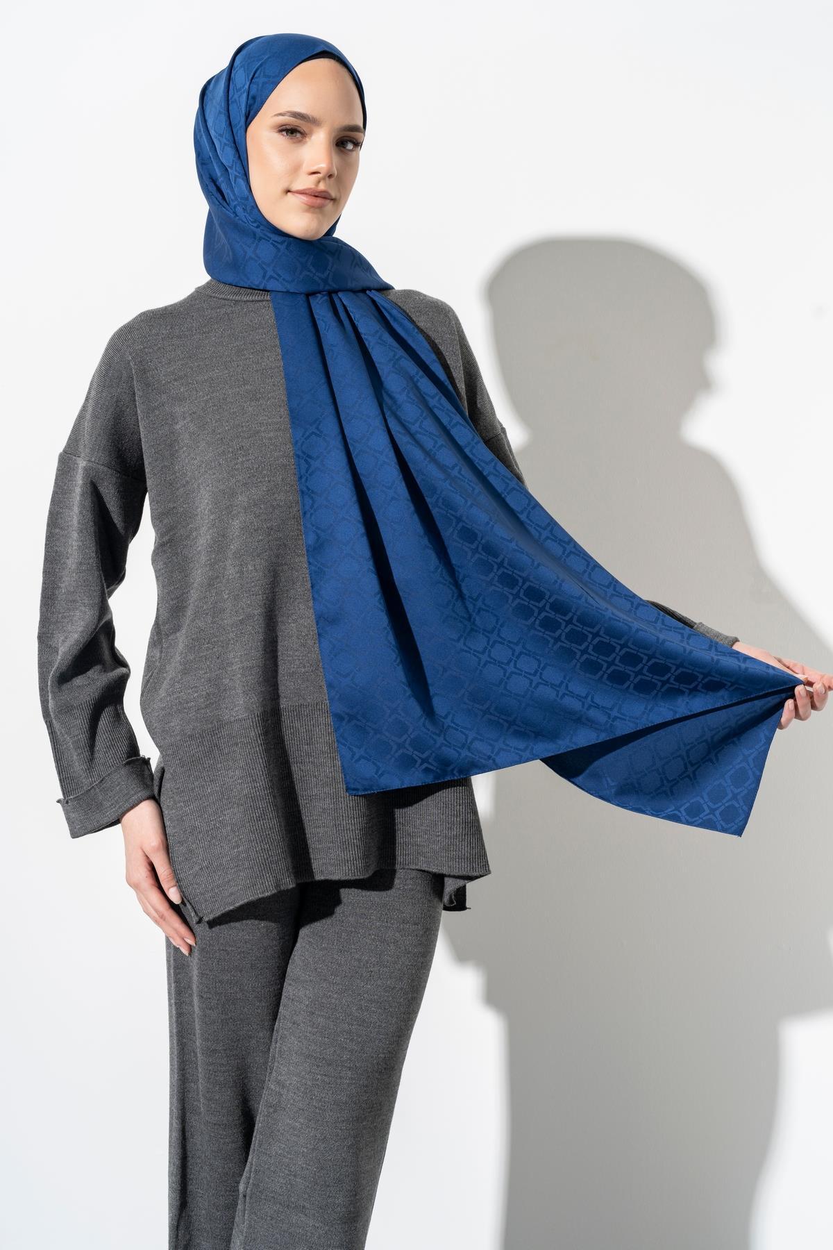 Kadın Geometrik Desen Jakarlı Şal SAKS MAVİ