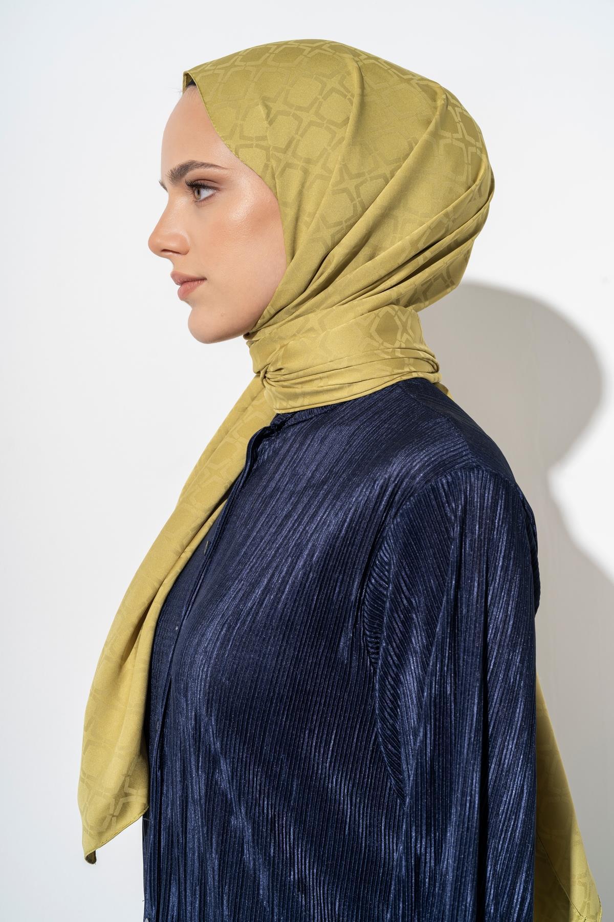 Kadın Geometrik Desen Jakarlı Şal YAĞ YEŞİLİ