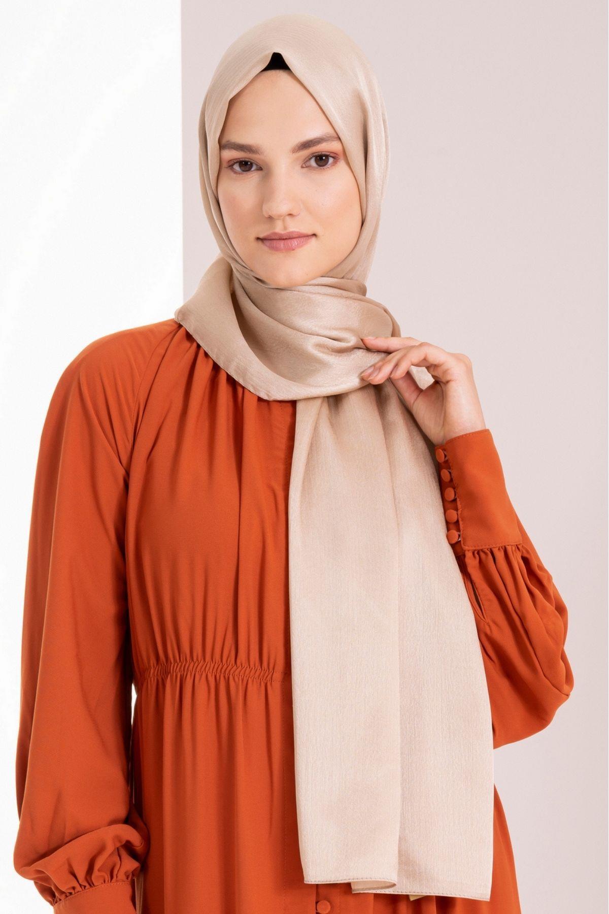 Kadın Kırışmaz Janjan Şal 185*70 Cm BEJ