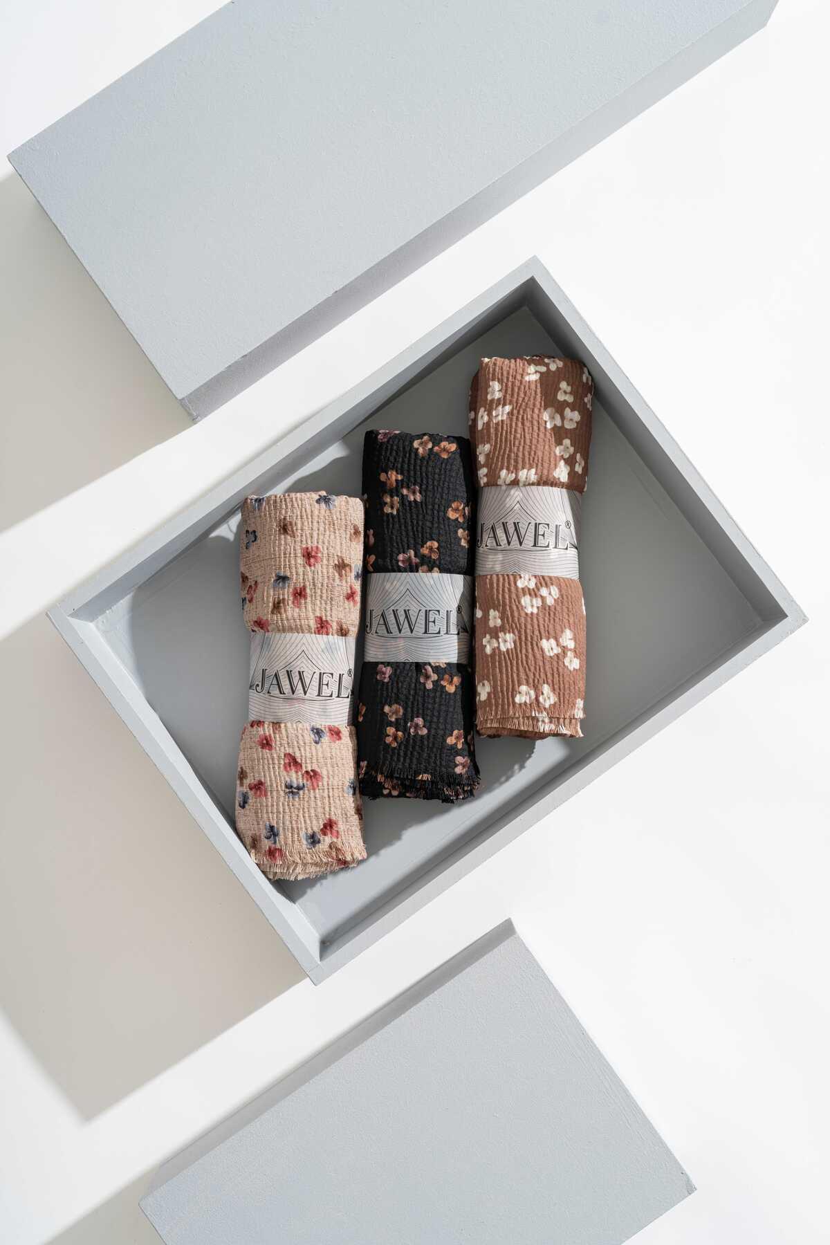 Kadın Kırışmaz Tesettür 3'lü Bürümcük Şal Paketi (Çikolata-Koyu Ceviz-Açık Kahve)
