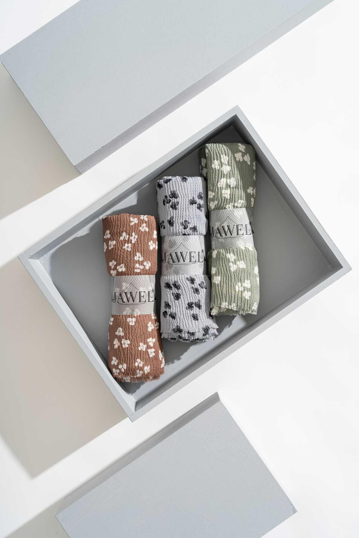 Kadın Kırışmaz Tesettür 3'lü Bürümcük Şal Paketi (Çikolata-Küf Yeşili-Açık Gri)