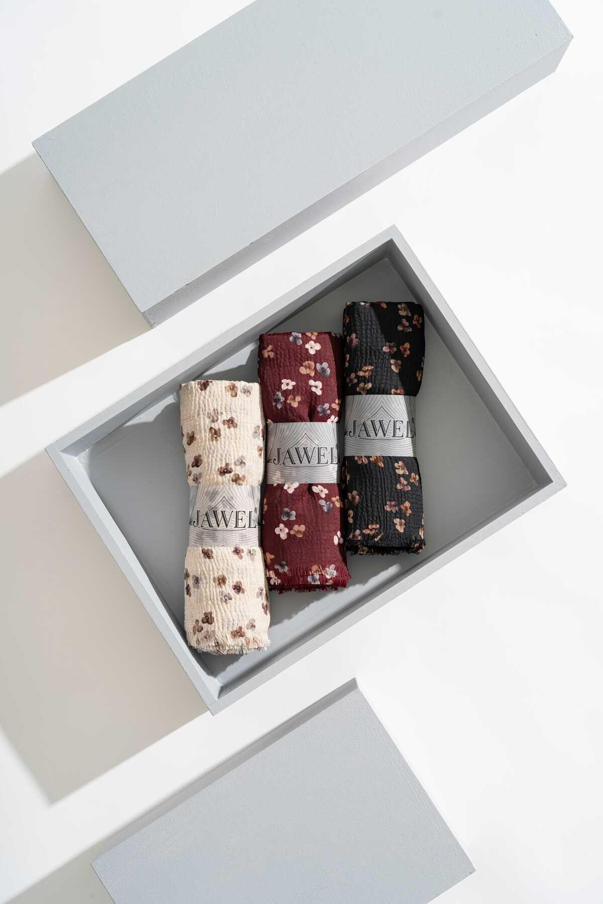 Kadın Kırışmaz Tesettür 3'lü Bürümcük Şal Paketi (Koyu Ceviz-Bordo-Krem Kahve)