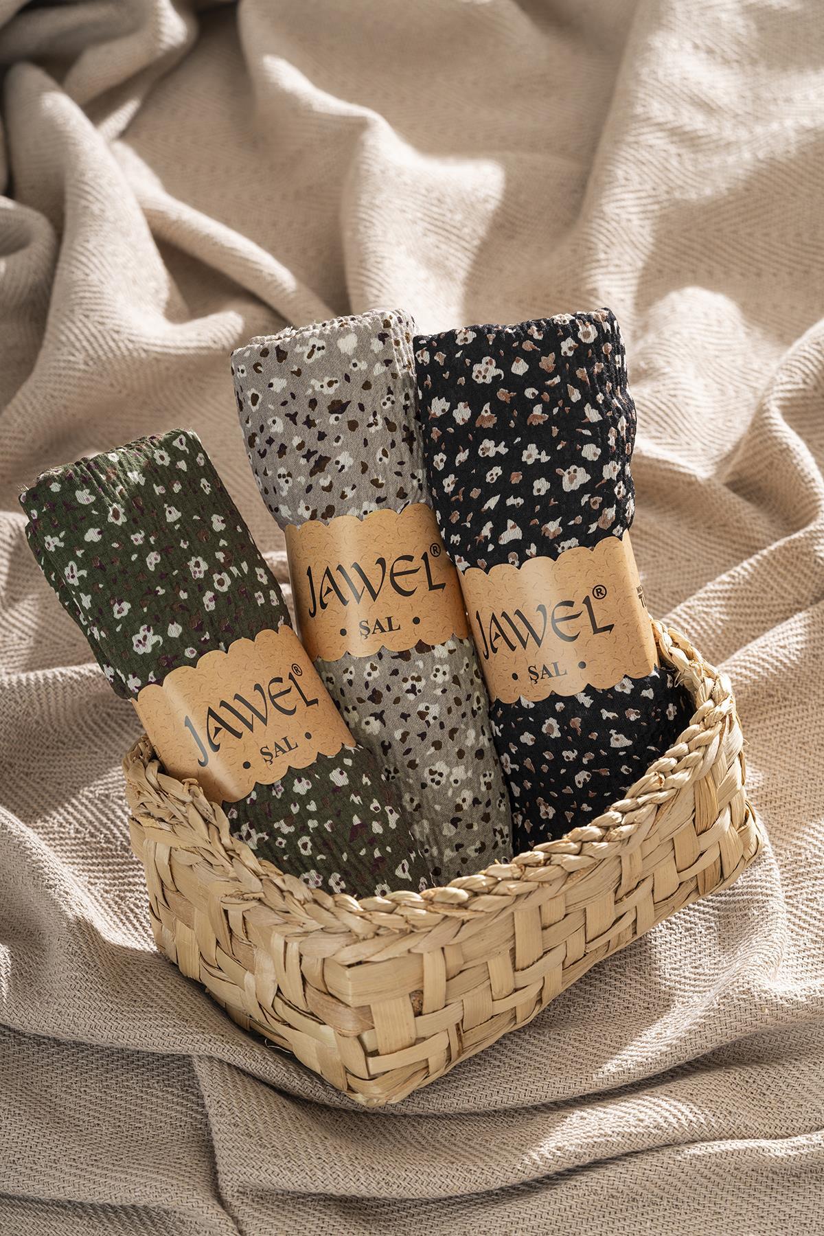 Kadın Kırışmaz Tesettür 3'lü Bürümcük Şal Paketi (Siyah-Koyu Vizon-Haki)