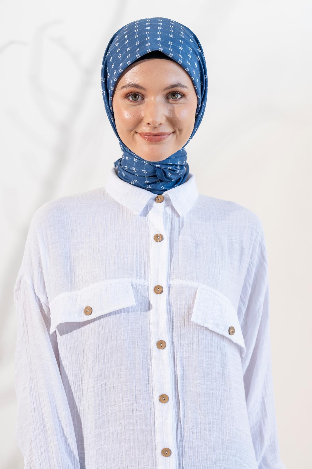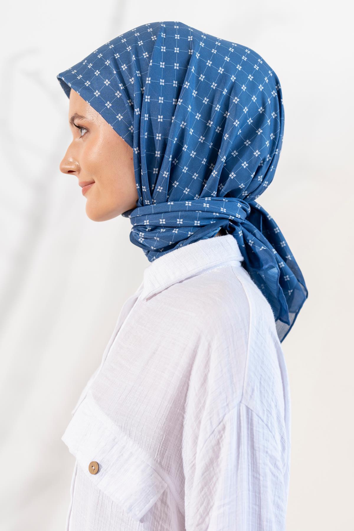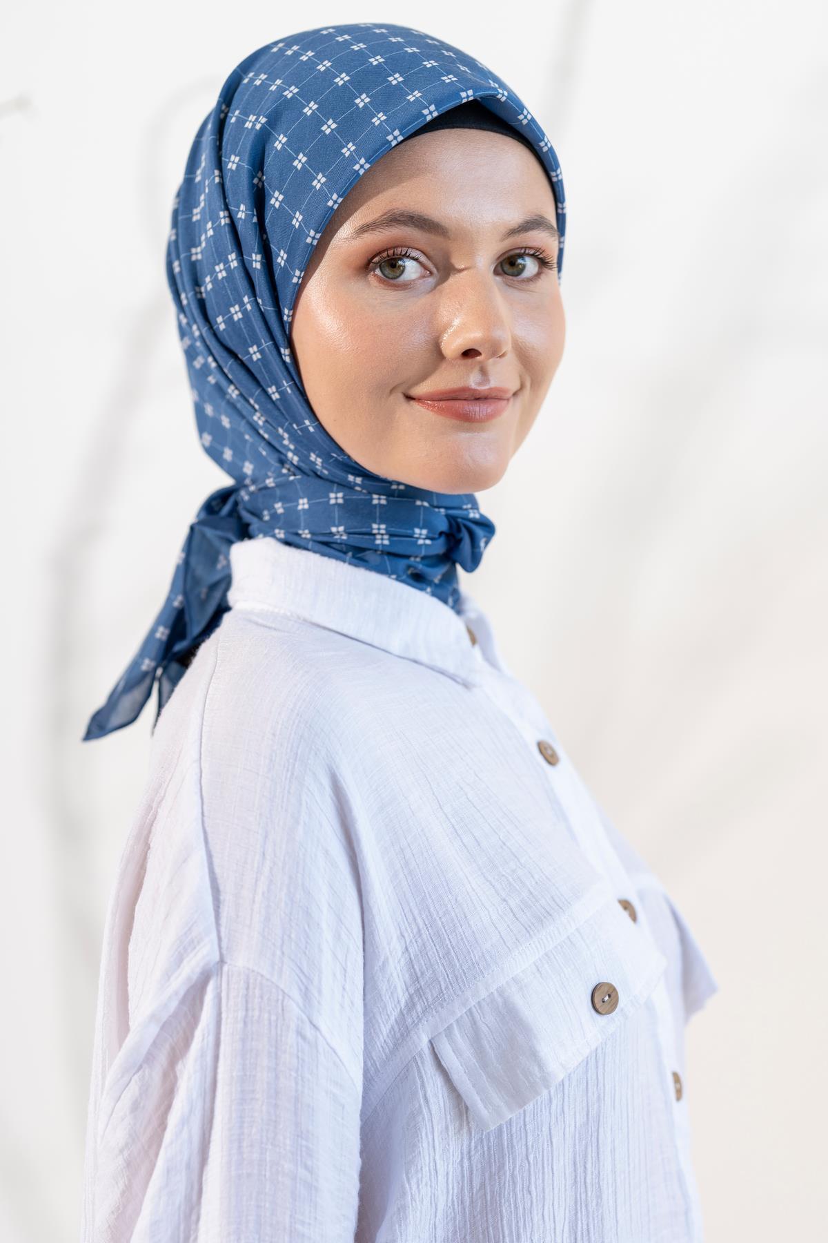 Kadın Küçük Kareli Soft Eşarp İNDİGO