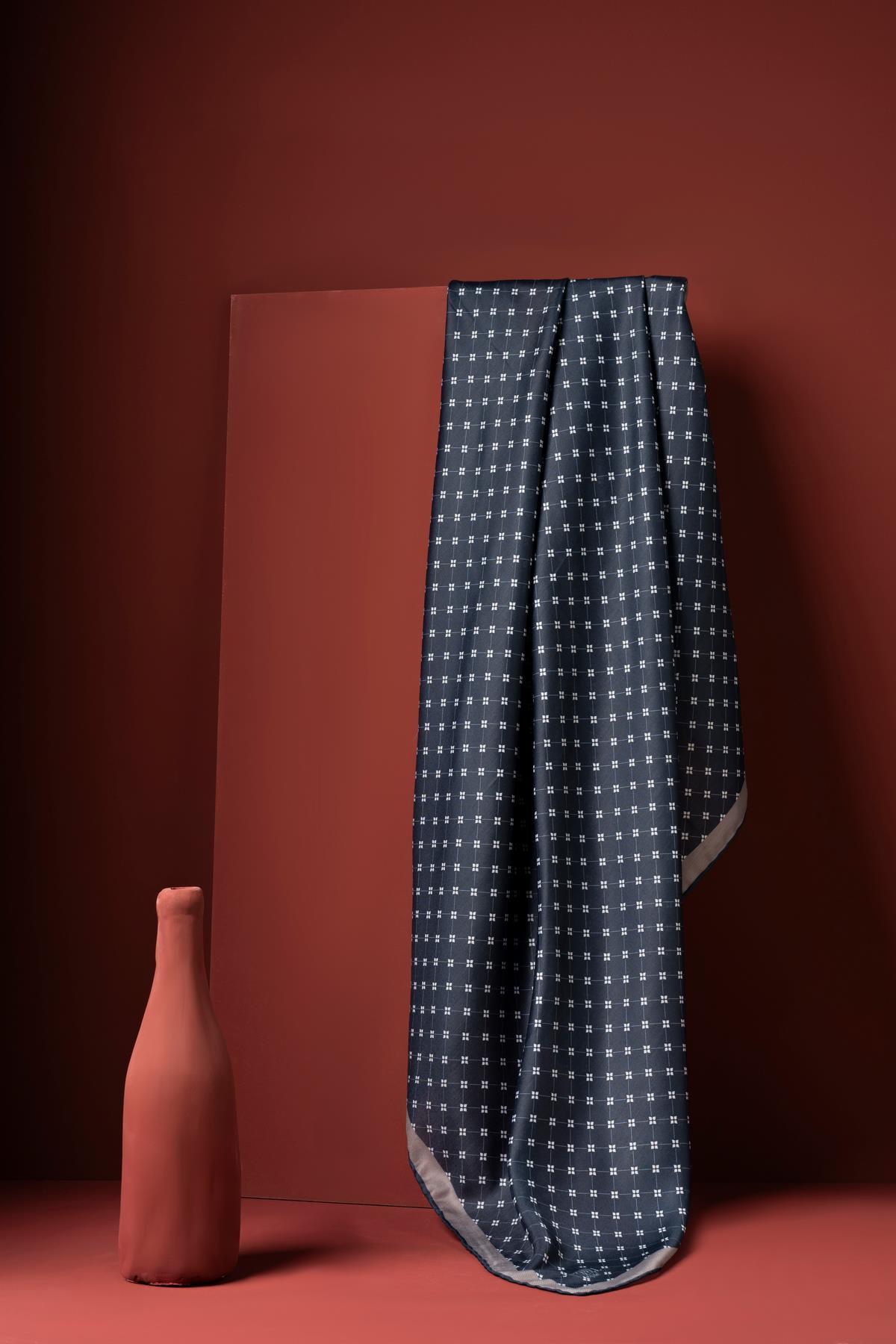 Kadın Küçük Kareli Soft Eşarp LACİVERT-VİZON