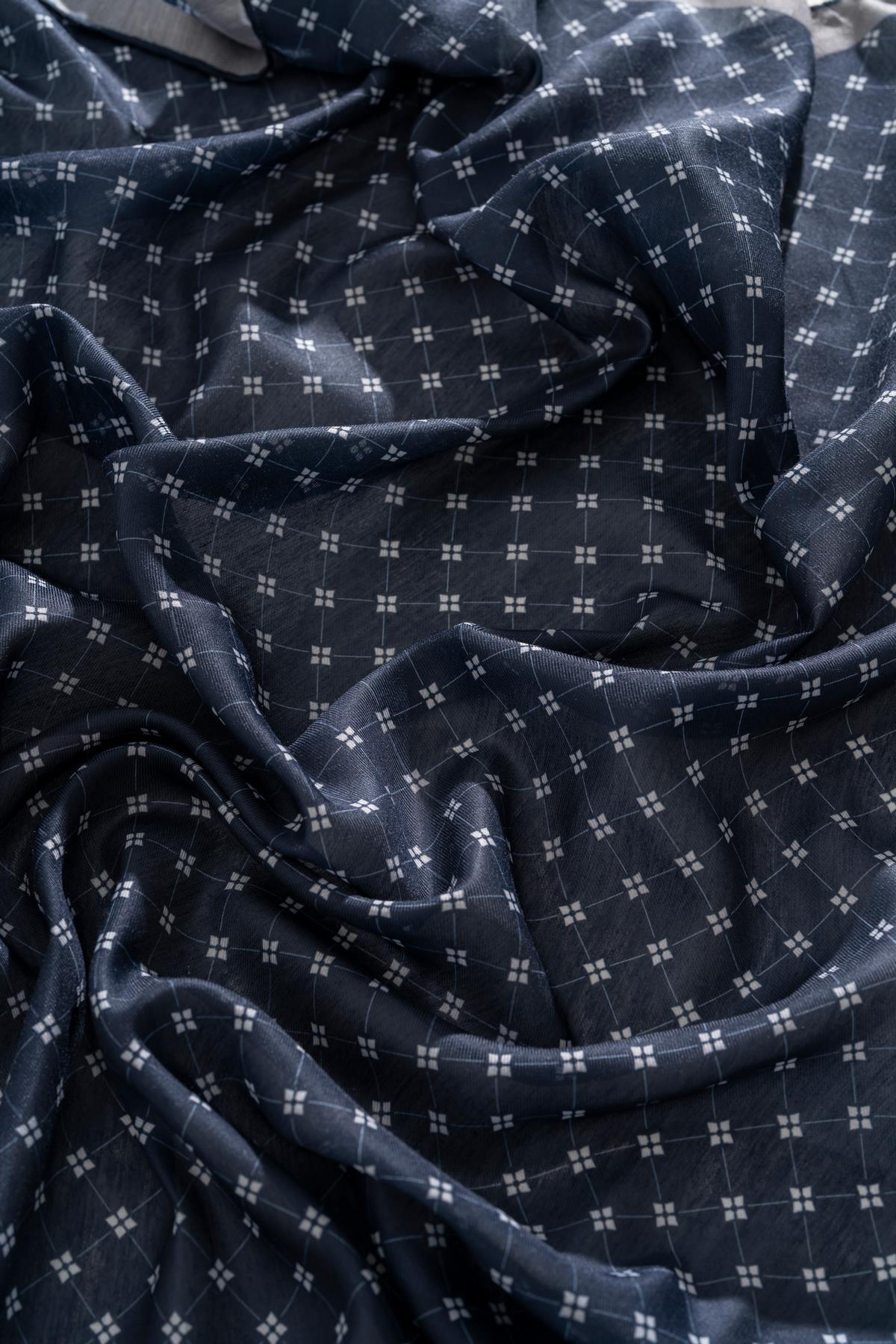 Kadın Küçük Kareli Soft Eşarp LACİVERT