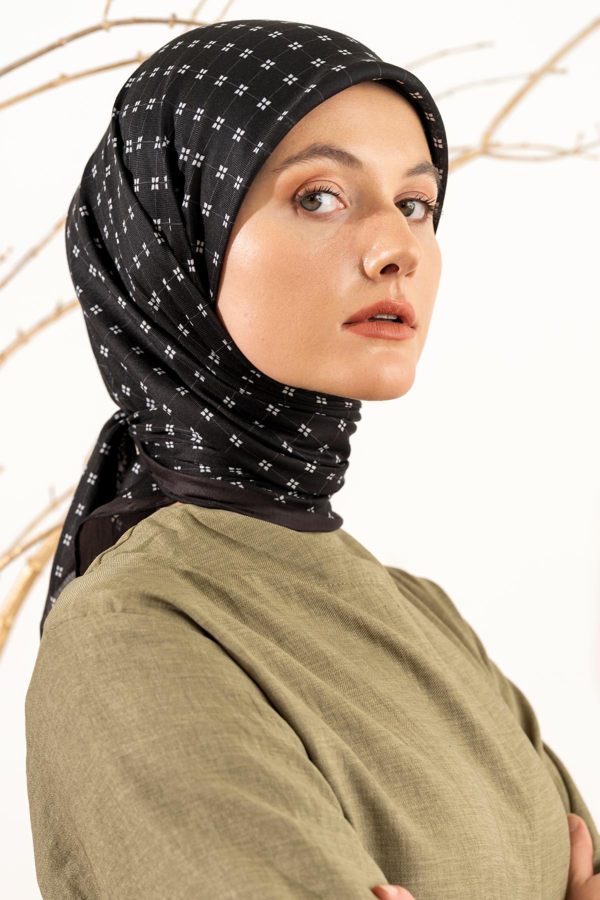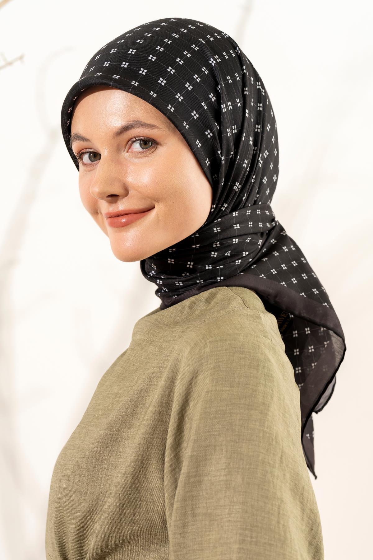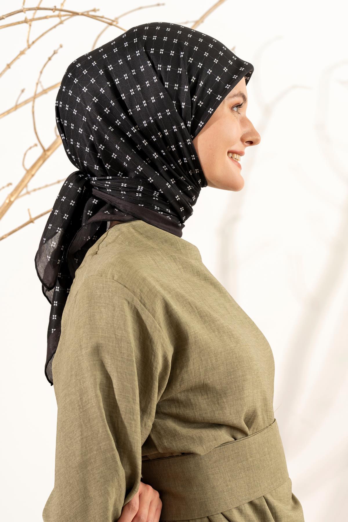 Kadın Küçük Kareli Soft Eşarp SİYAH