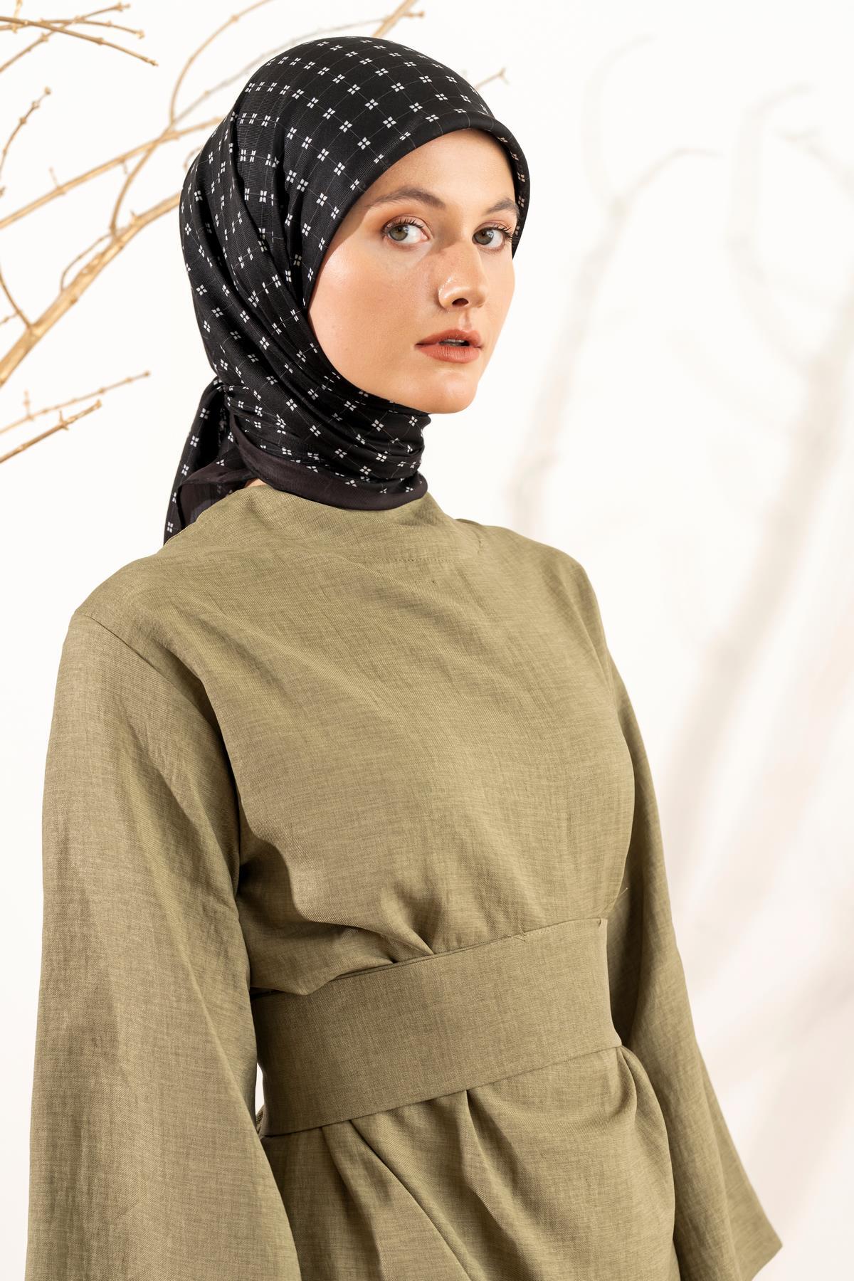 Kadın Küçük Kareli Soft Eşarp YAĞ YEŞİLİ