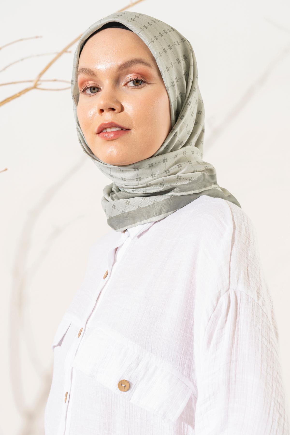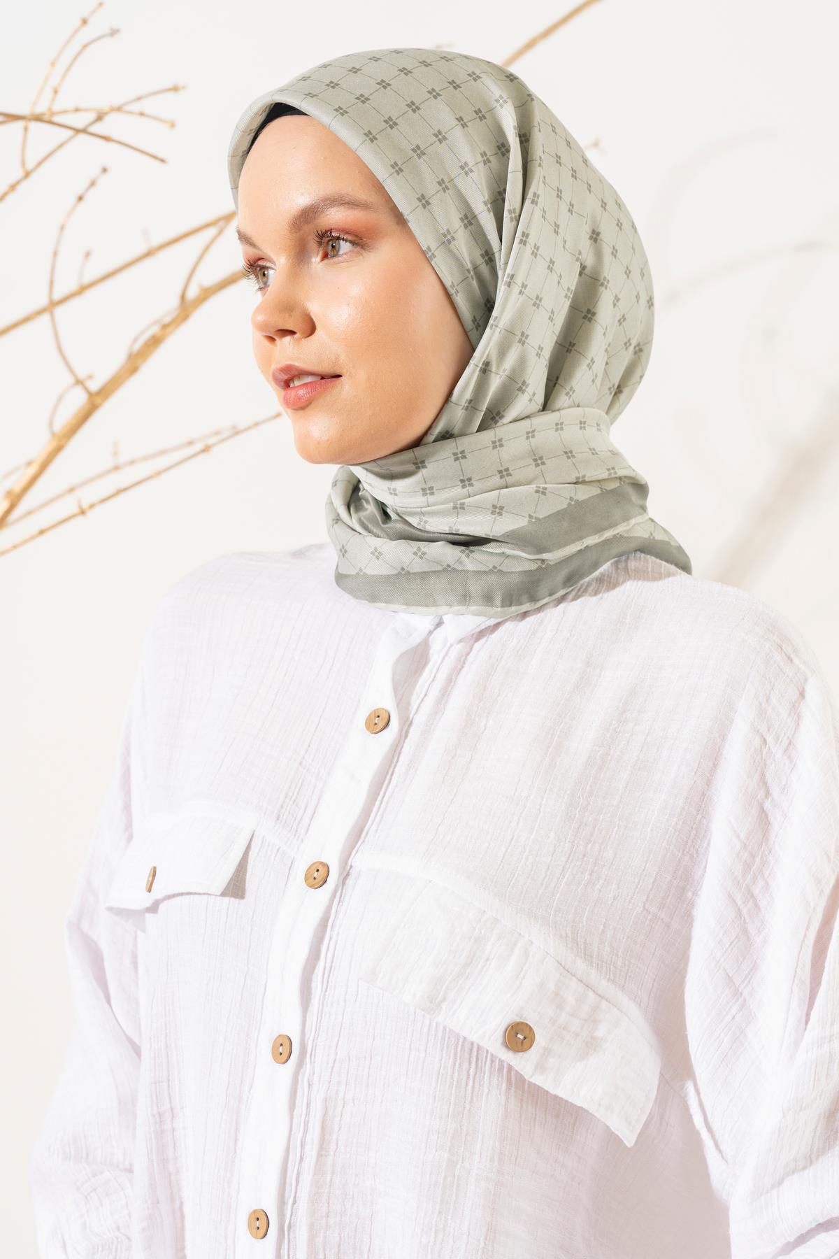 Kadın Küçük Kareli Soft Eşarp YAĞ YEŞİLİ