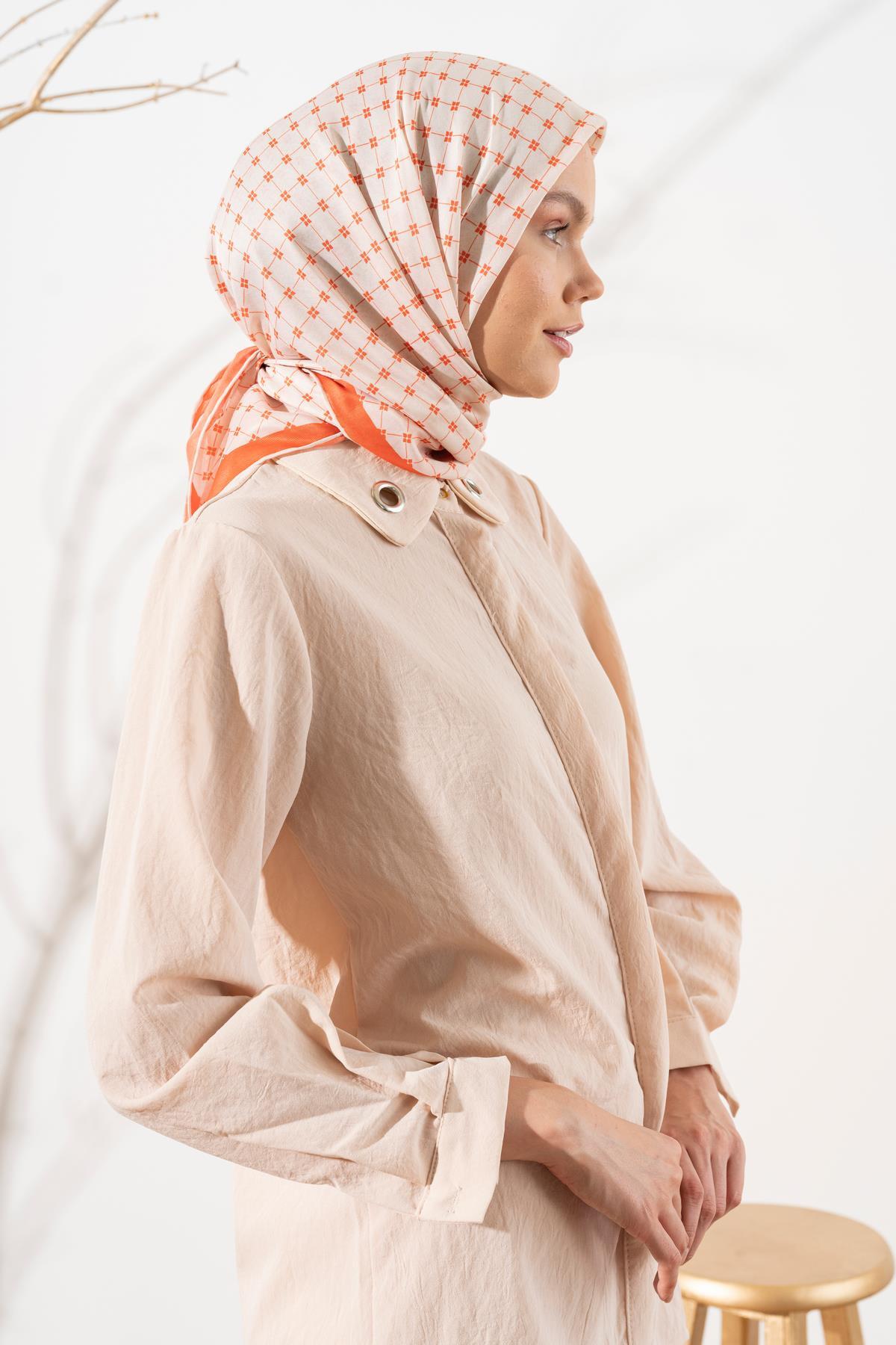 Kadın Küçük Kareli Soft Eşarp TURUNCU
