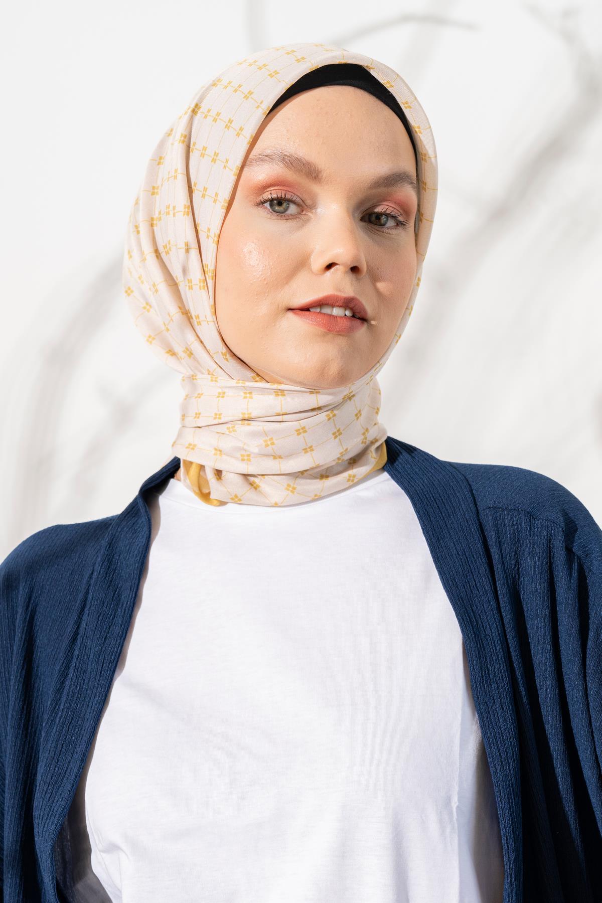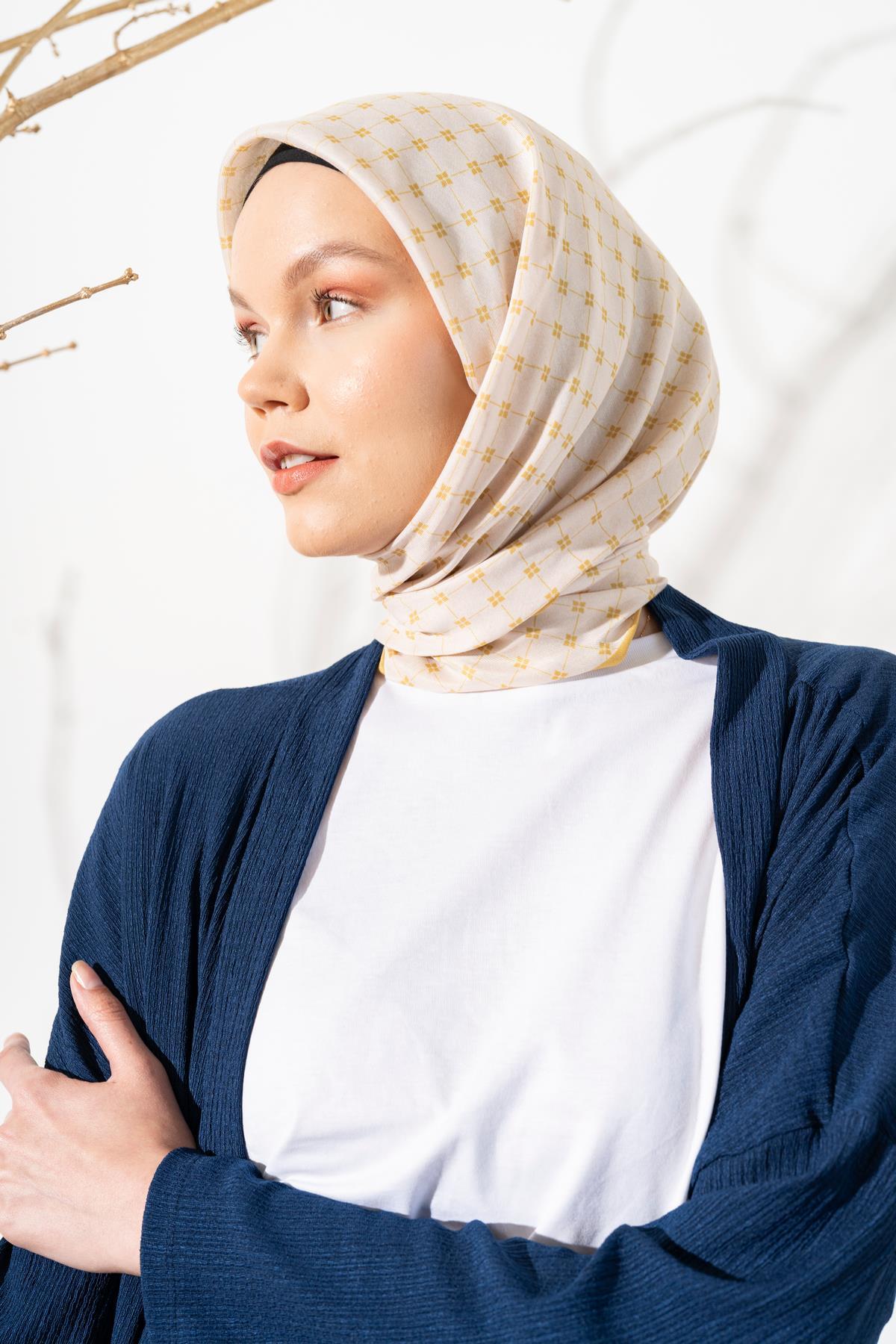Kadın Küçük Kareli Soft Eşarp SİYAH HARDAL