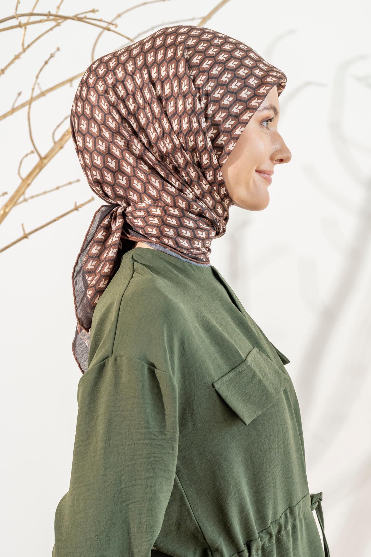 Kadın Lale Desen Soft Eşarp ACI KAHVE