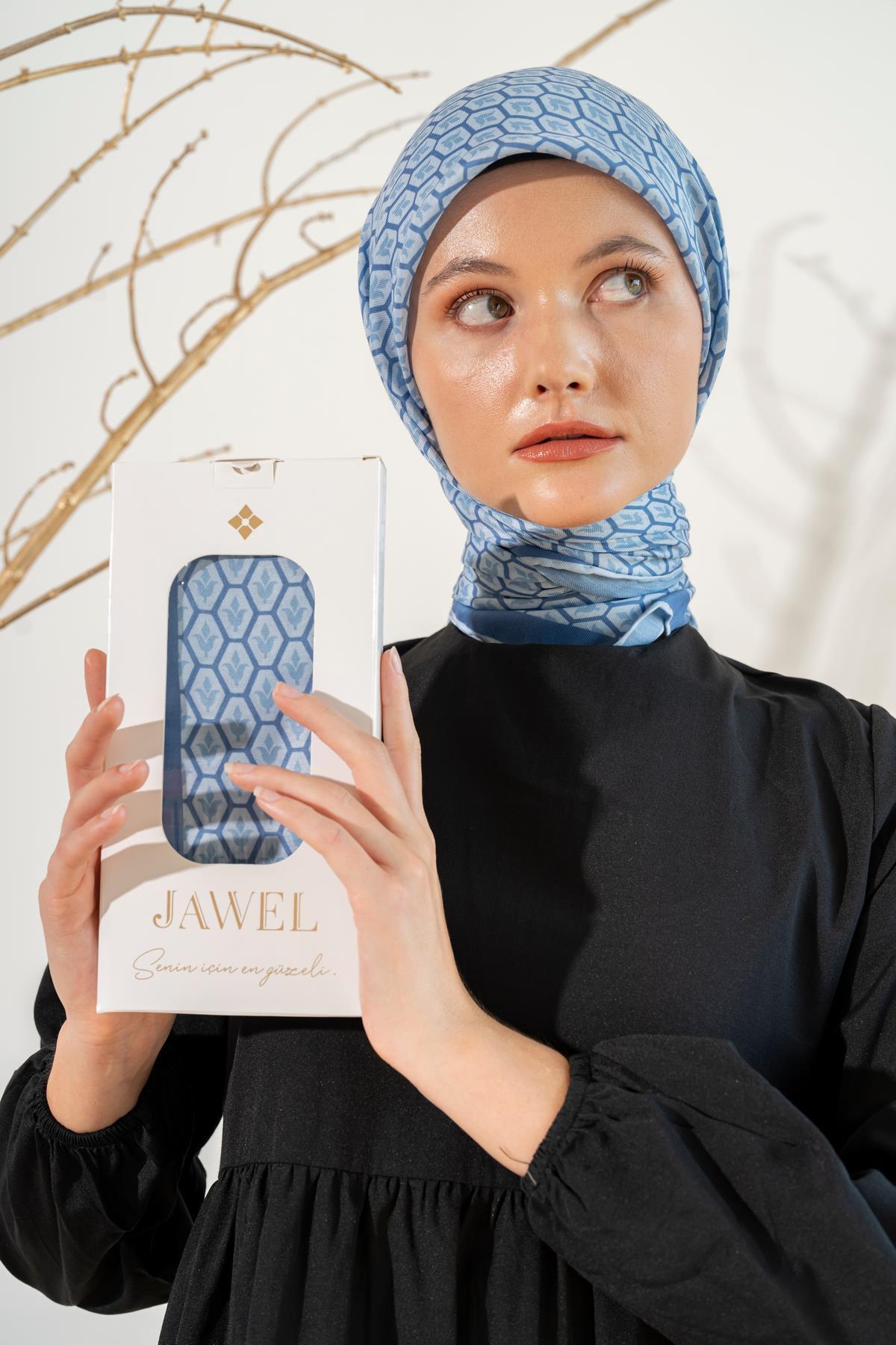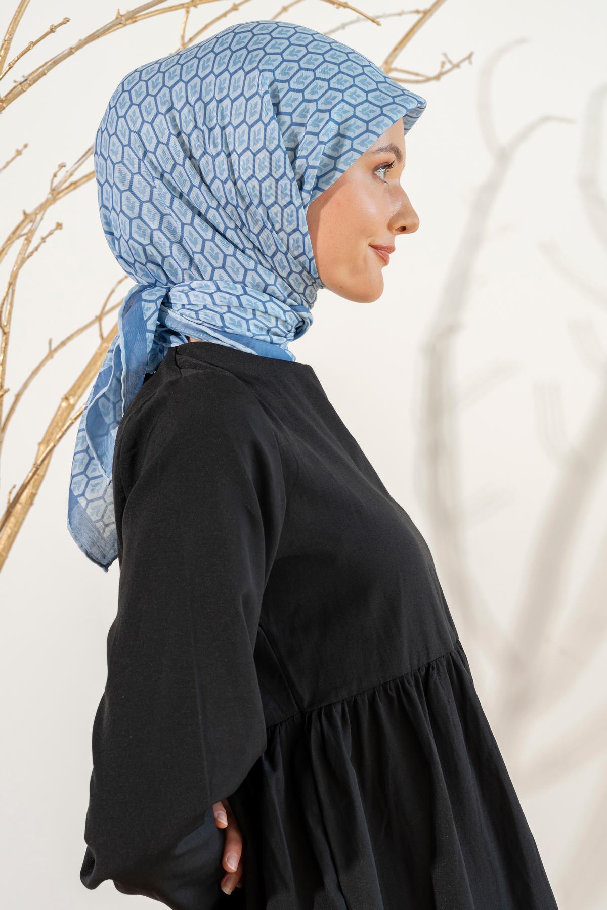 Kadın Lale Desen Soft Eşarp BEBE MAVİ