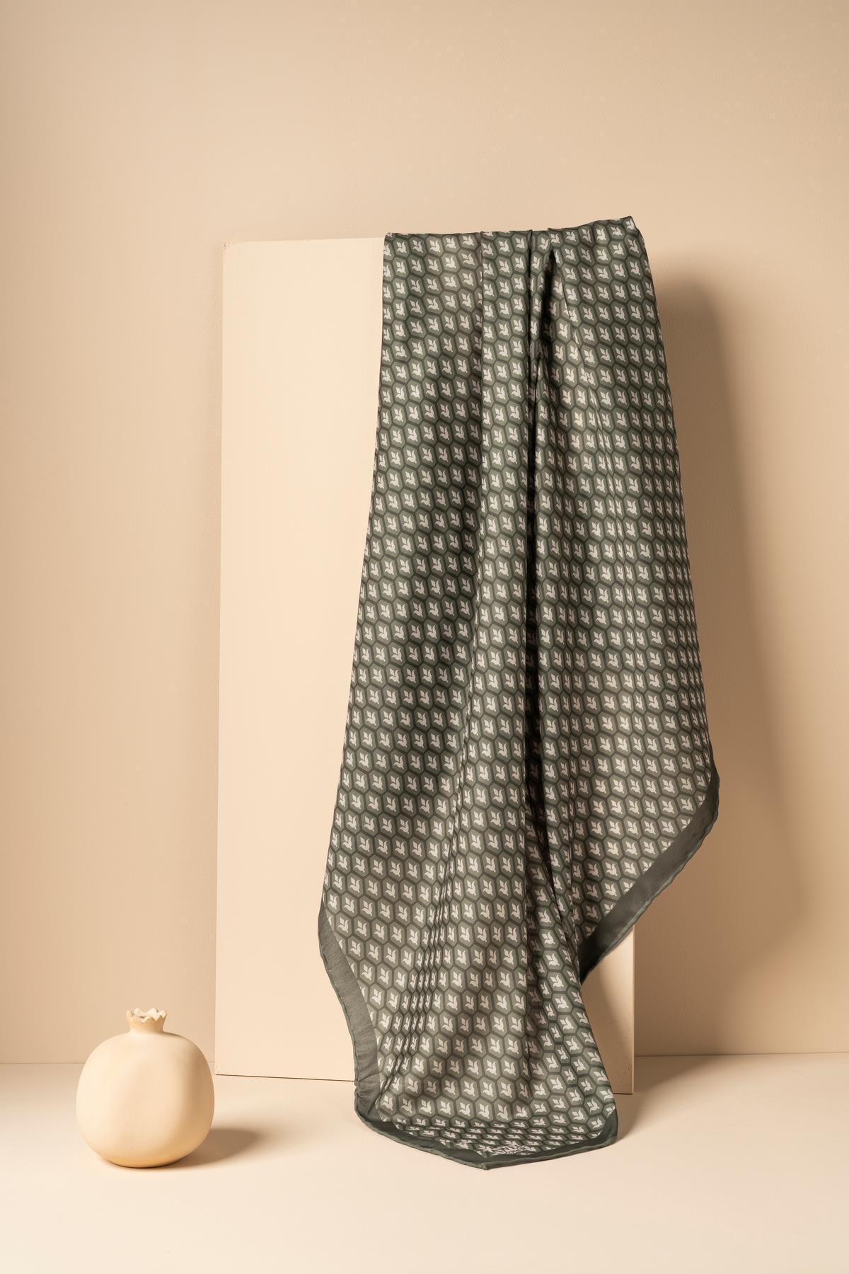 Kadın Lale Desen Soft Eşarp YAĞ YEŞİLİ