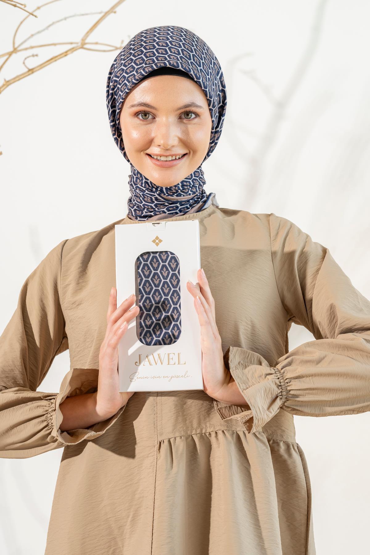 Kadın Lale Desen Soft Eşarp LACİVERT-VİZON