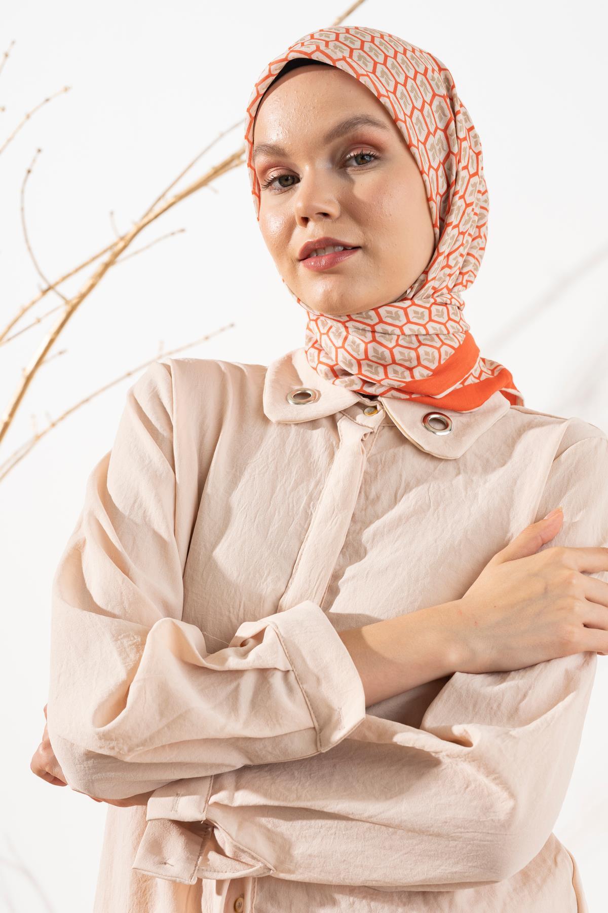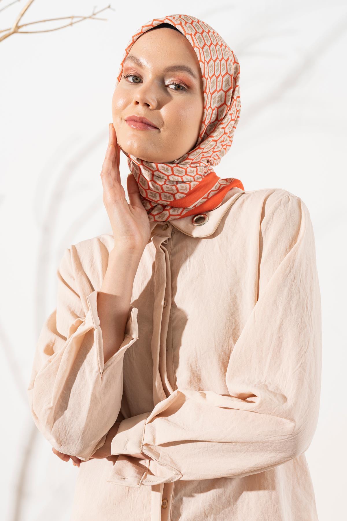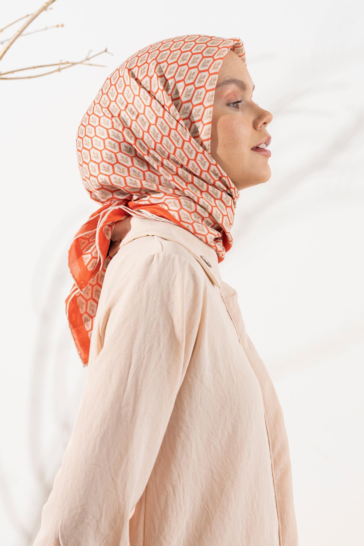 Kadın Lale Desen Soft Eşarp TURUNCU