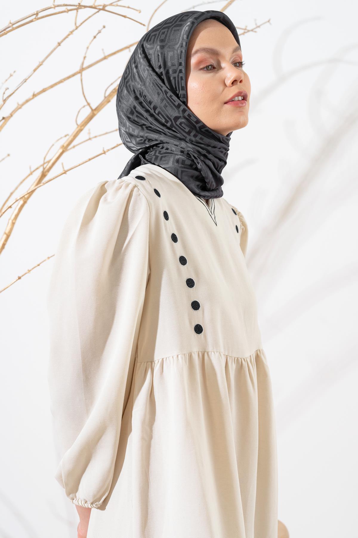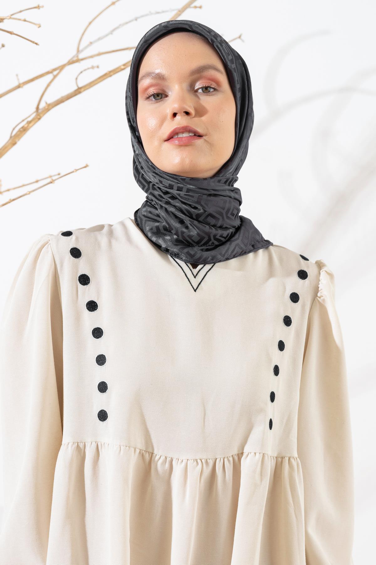 Kadın Mozaik Desenli Jakarlı Eşarp KREM