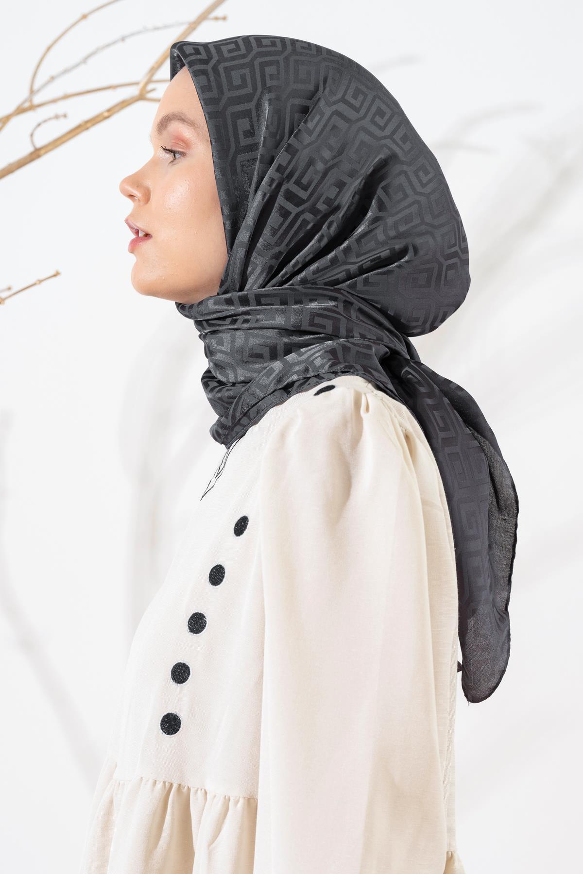 Kadın Mozaik Desenli Jakarlı Eşarp ANTRASİT