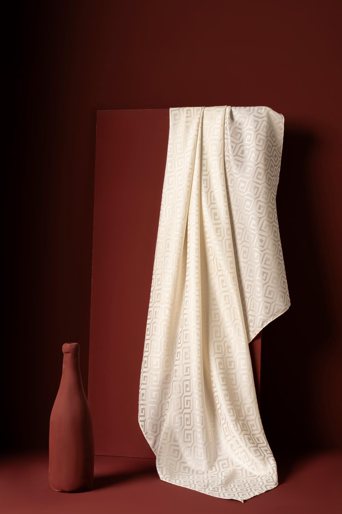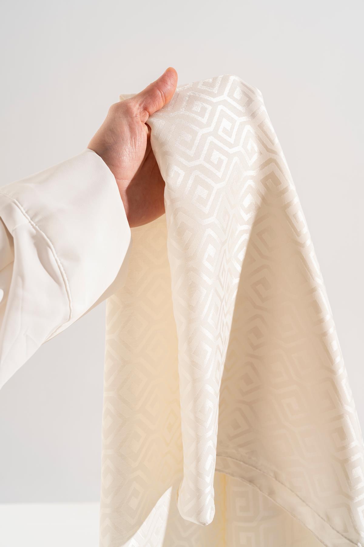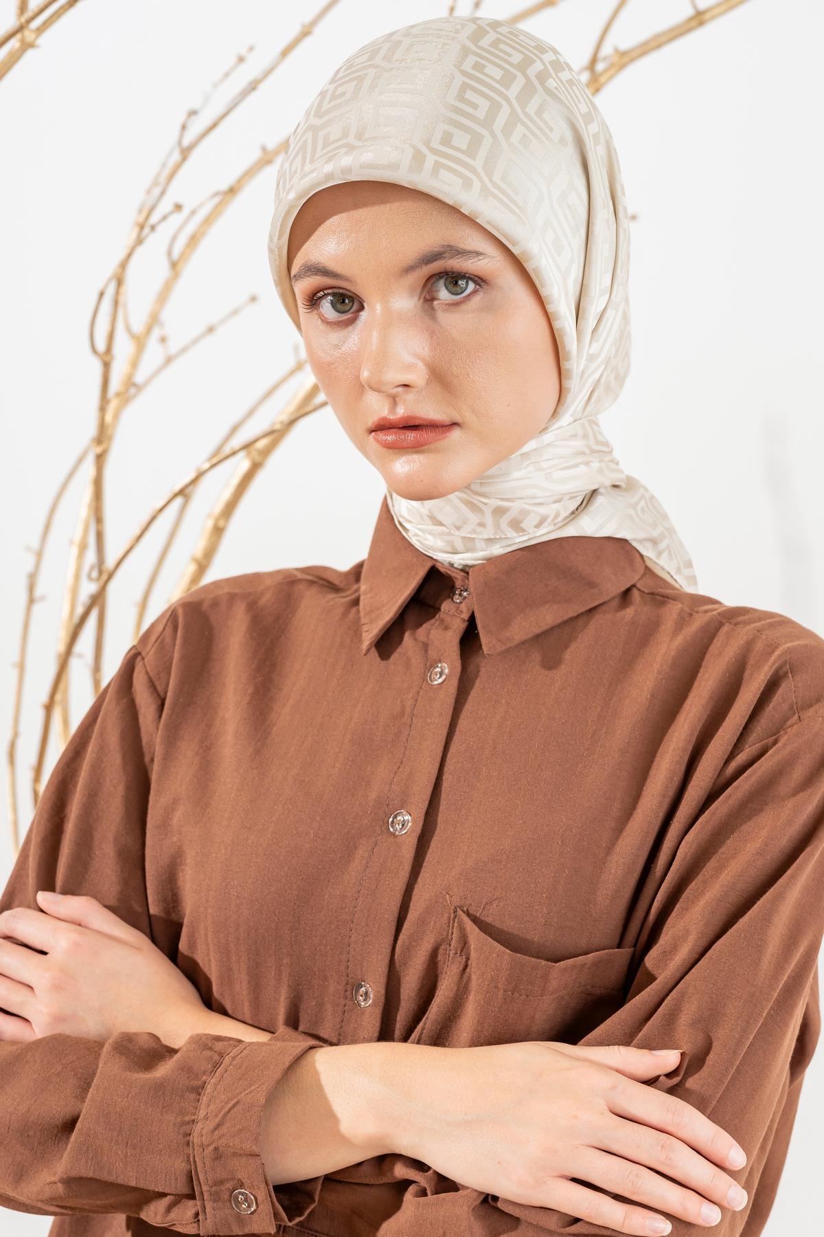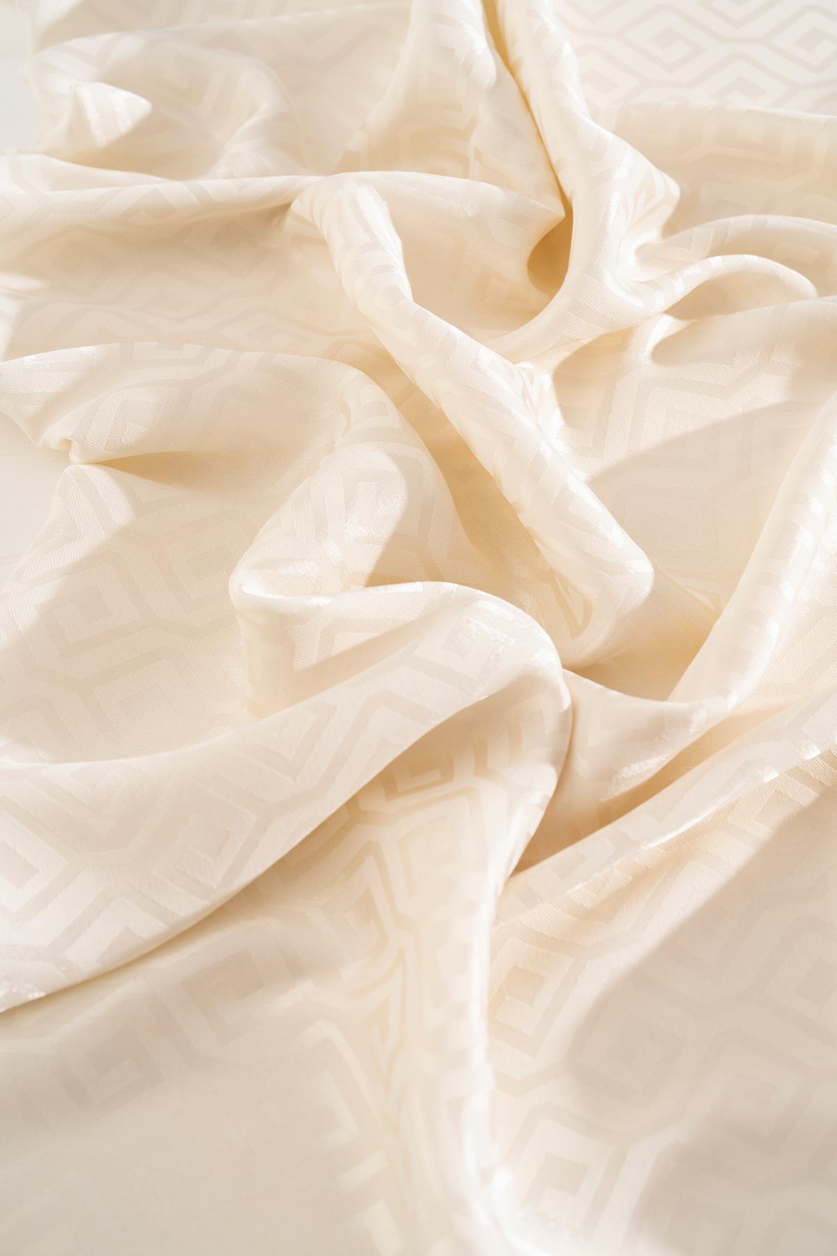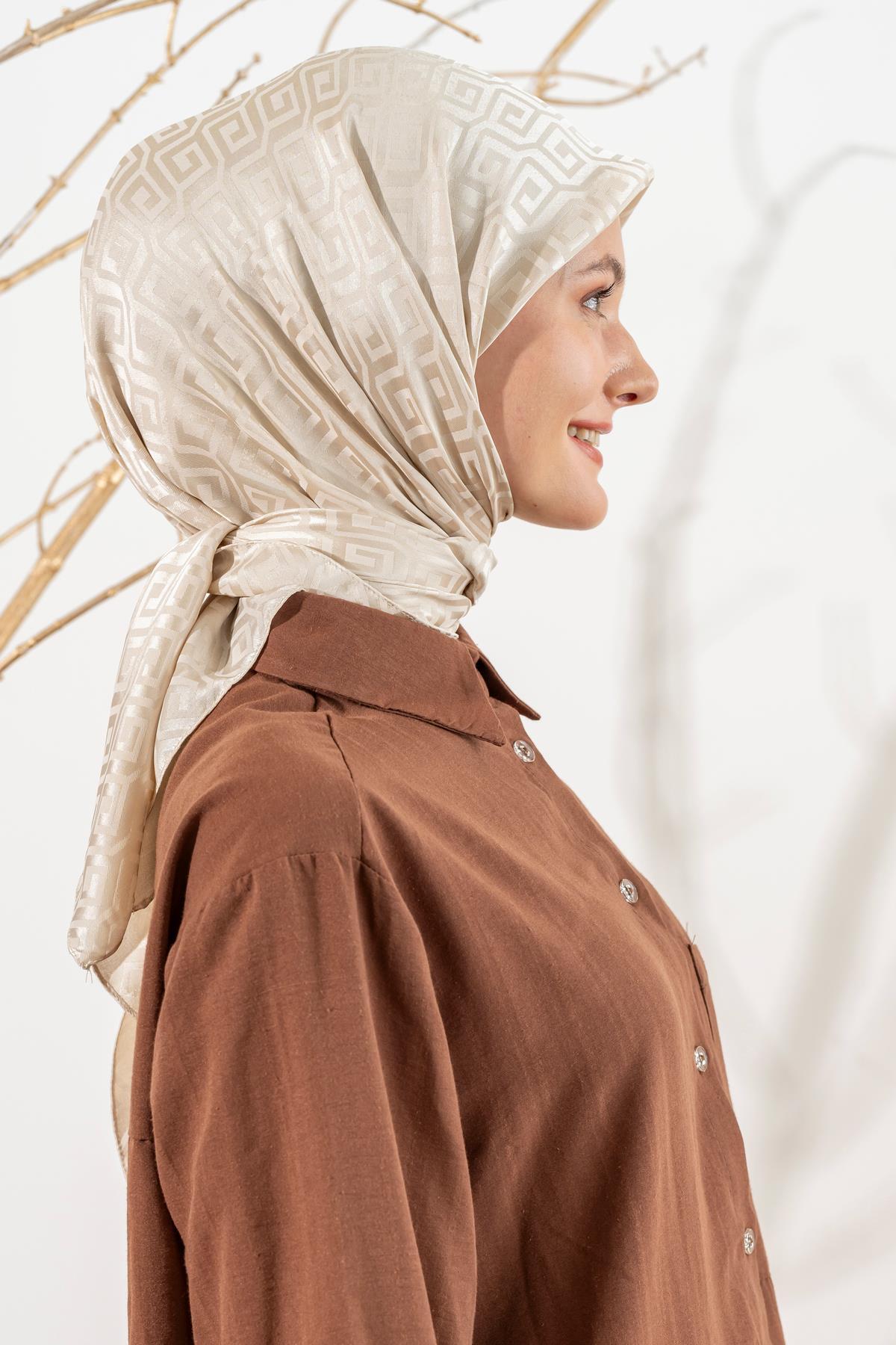 Kadın Mozaik Desenli Jakarlı Eşarp KREM