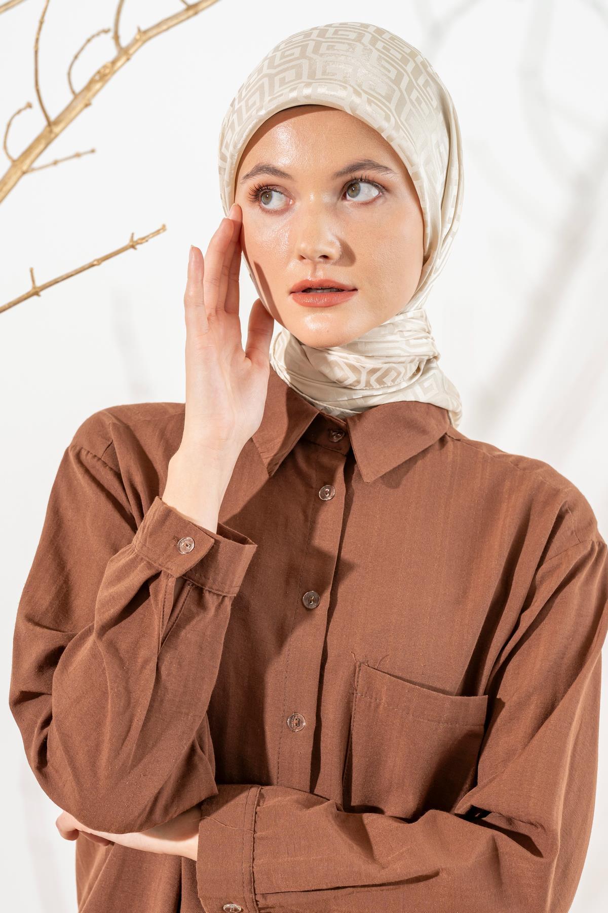 Kadın Mozaik Desenli Jakarlı Eşarp BEJ