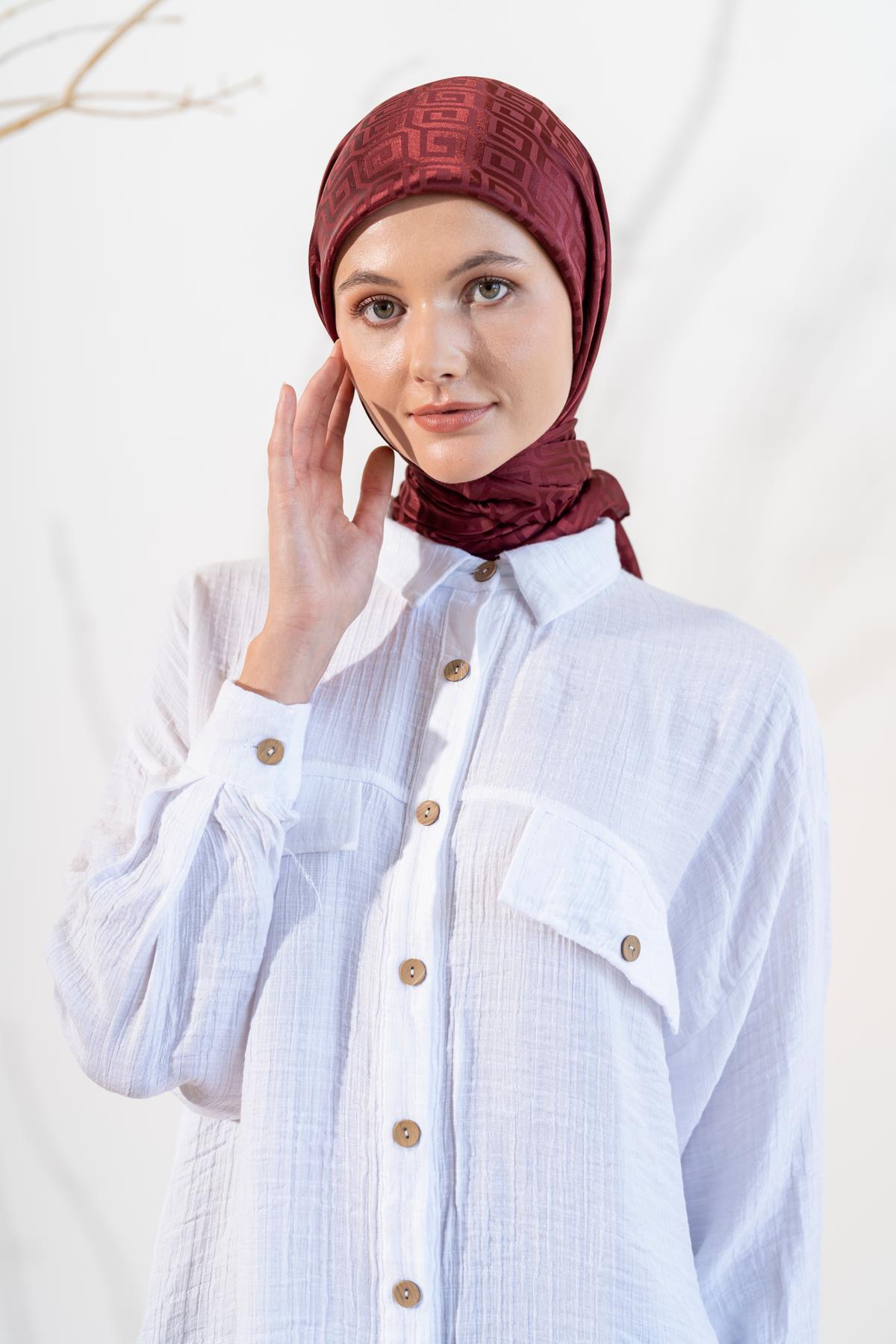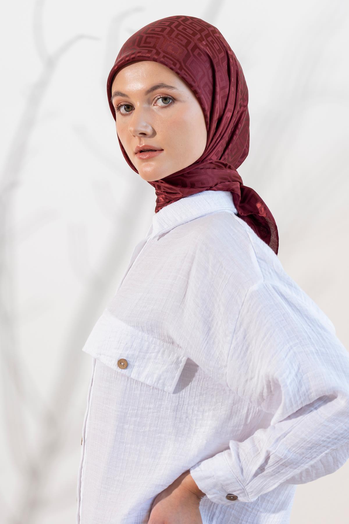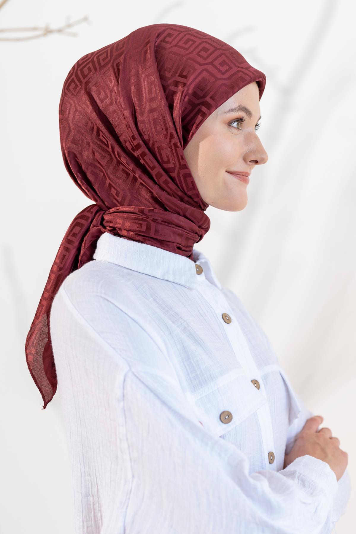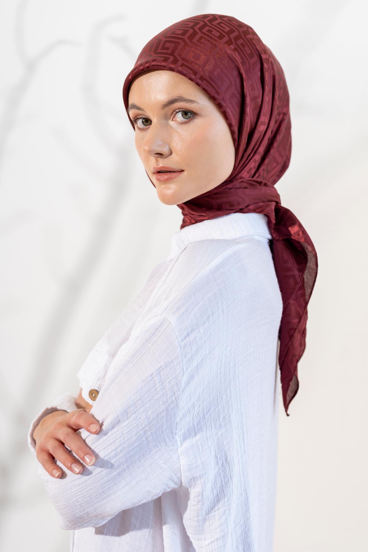 Kadın Mozaik Desenli Jakarlı Eşarp BORDO