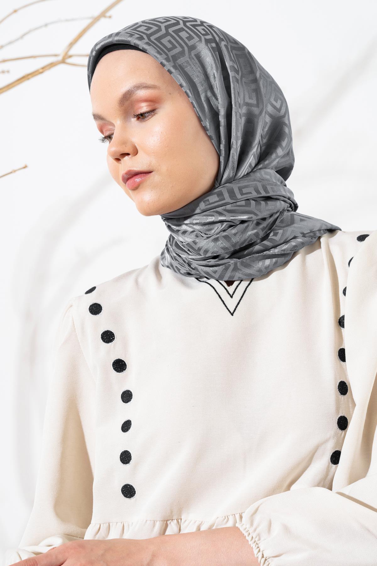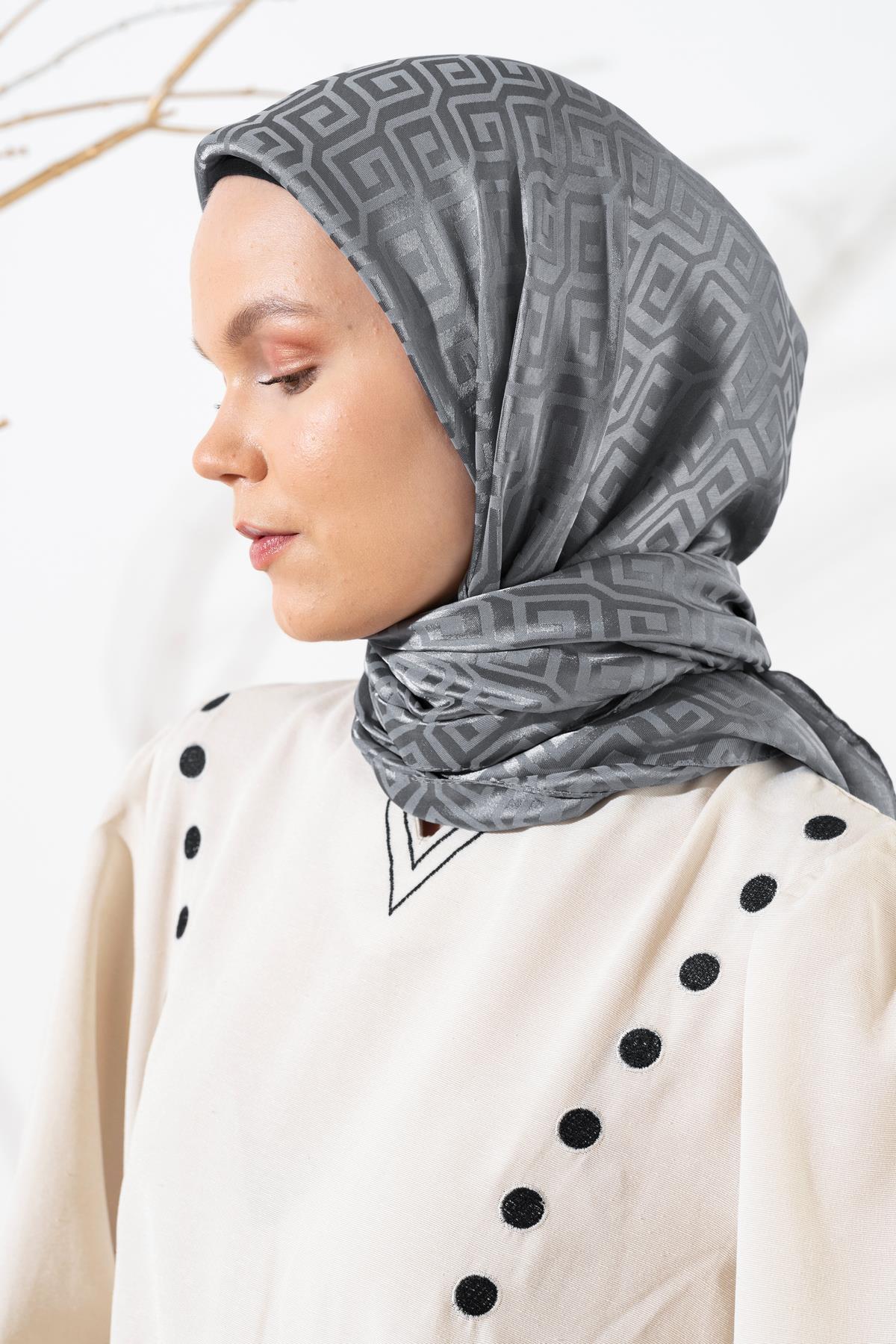 Kadın Mozaik Desenli Jakarlı Eşarp GRİ