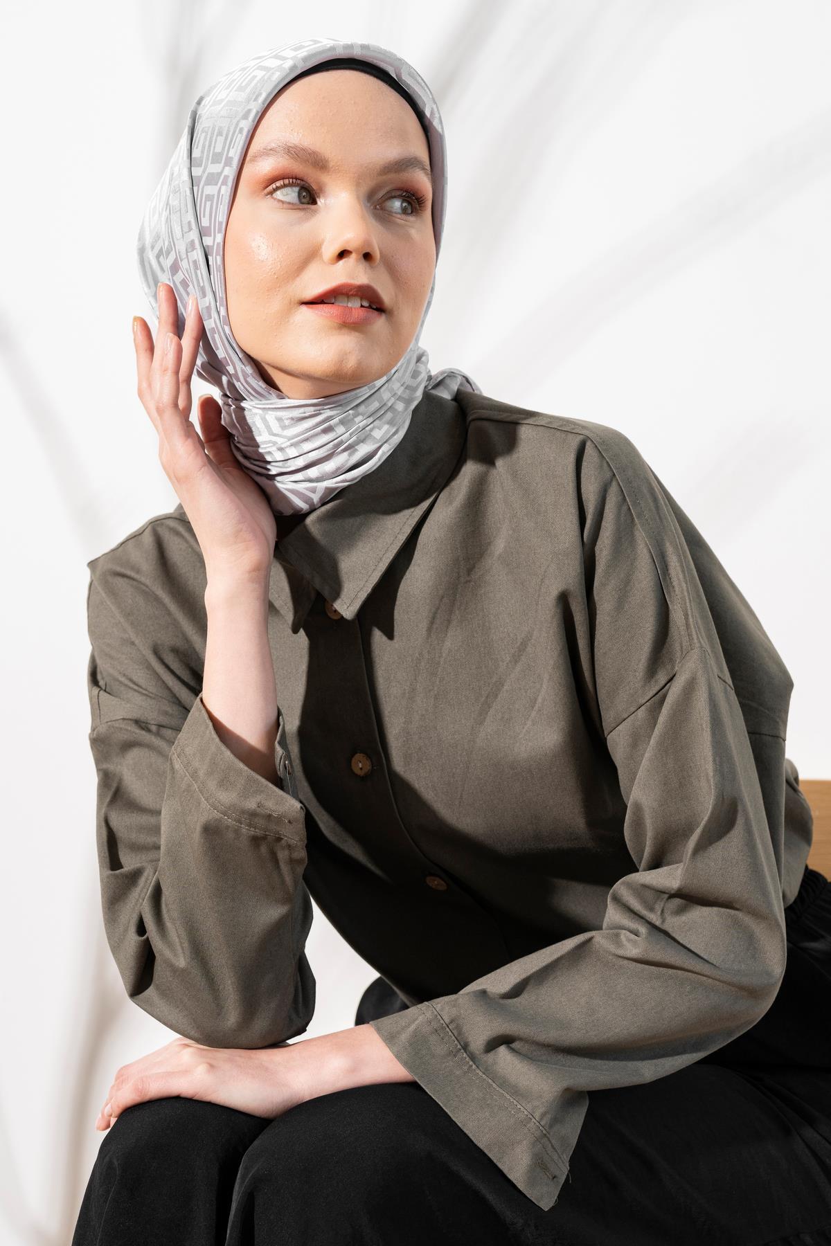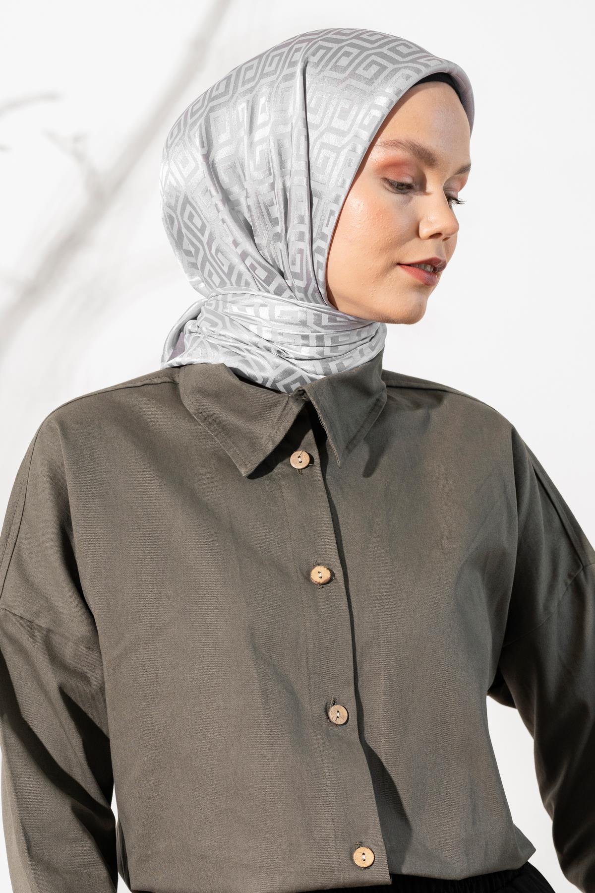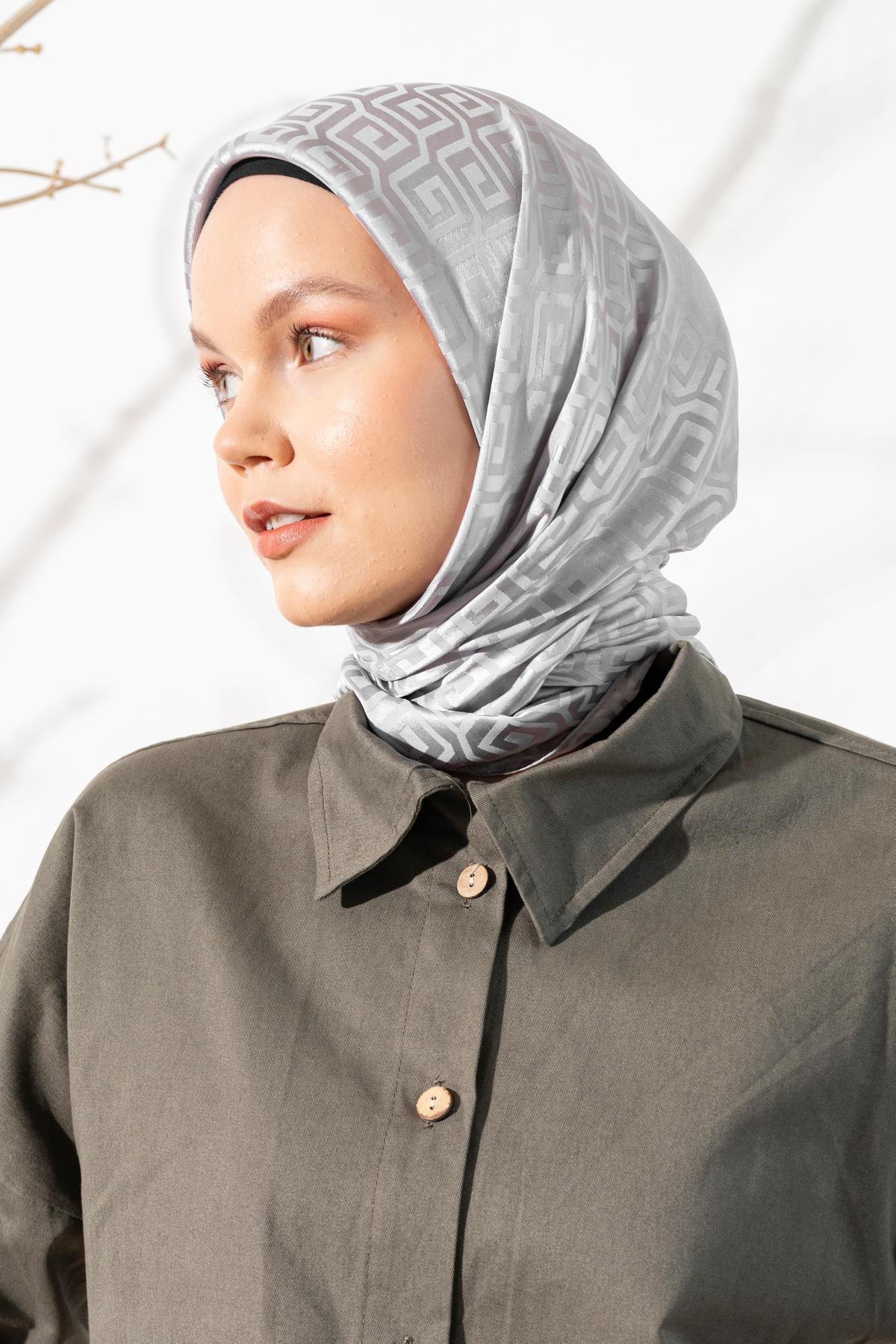 Kadın Mozaik Desenli Jakarlı Eşarp GÜMÜŞ GRİ