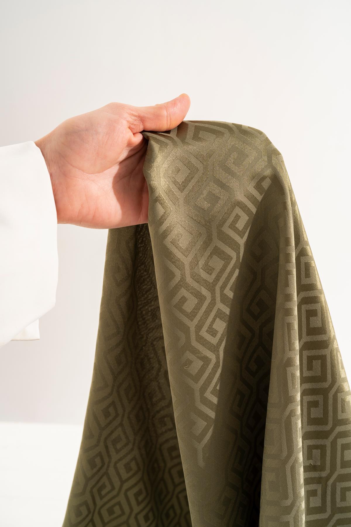 Kadın Mozaik Desenli Jakarlı Eşarp YAĞ YEŞİLİ