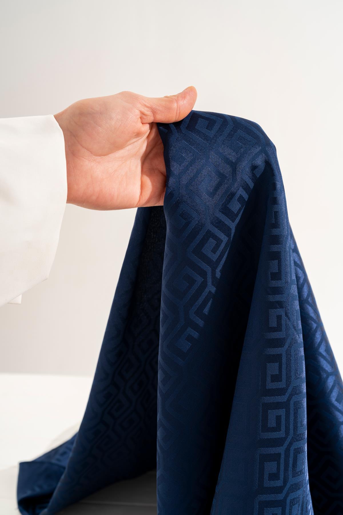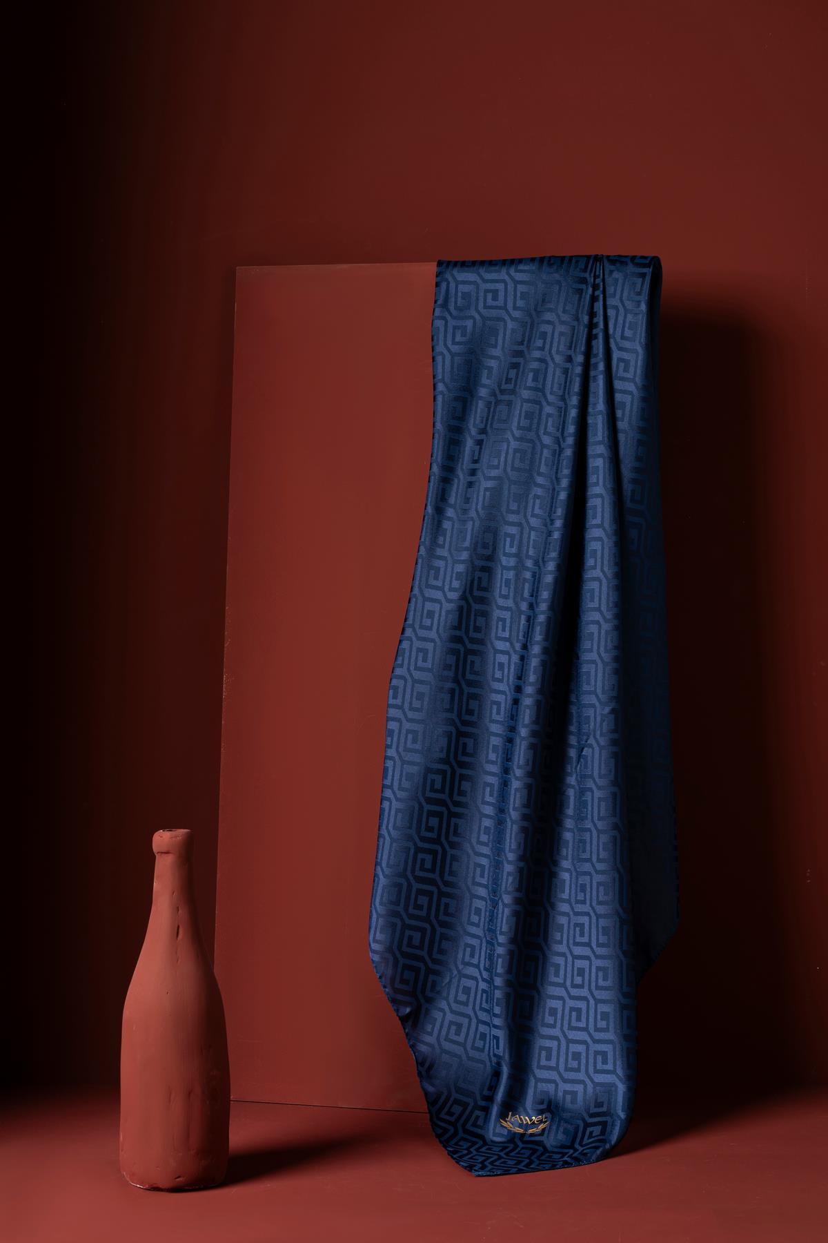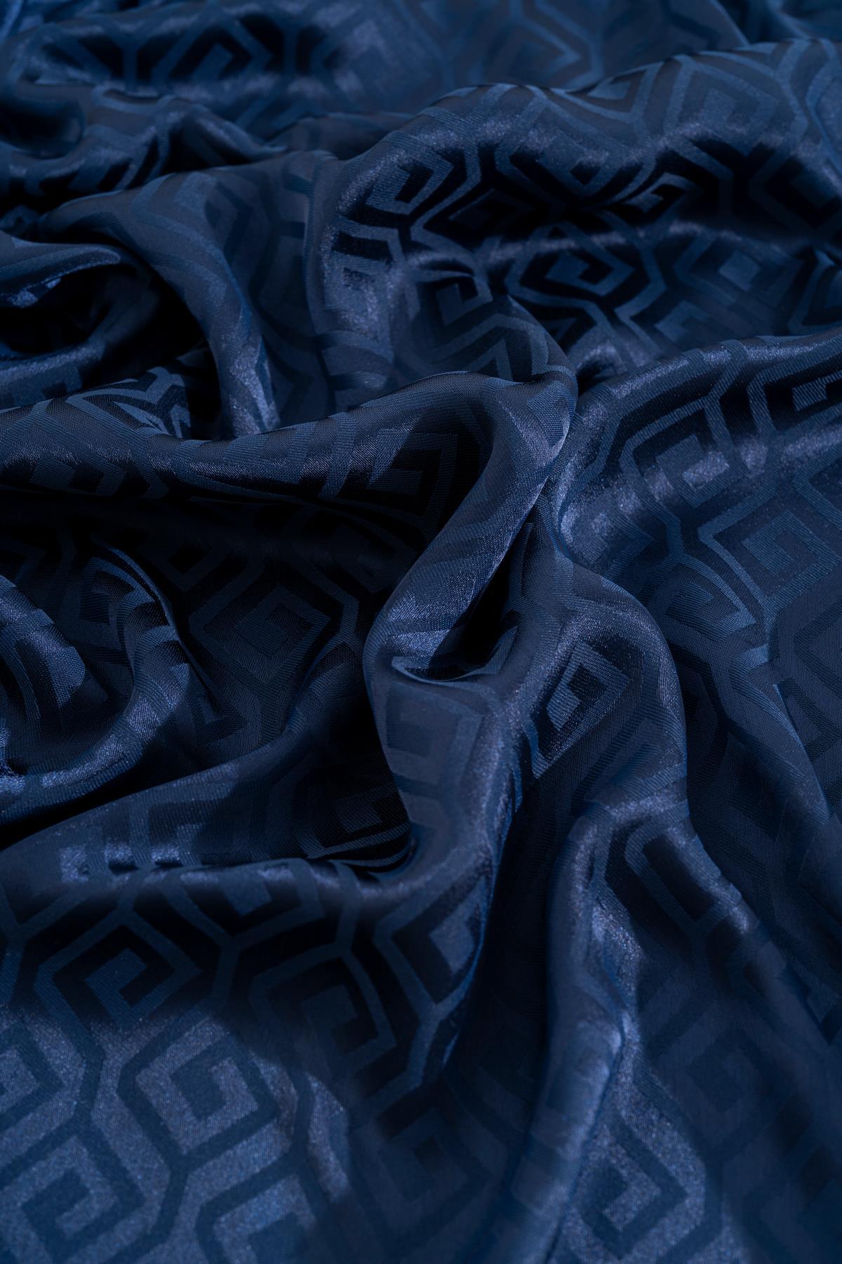 Kadın Mozaik Desenli Jakarlı Eşarp KOYU İNDİGO