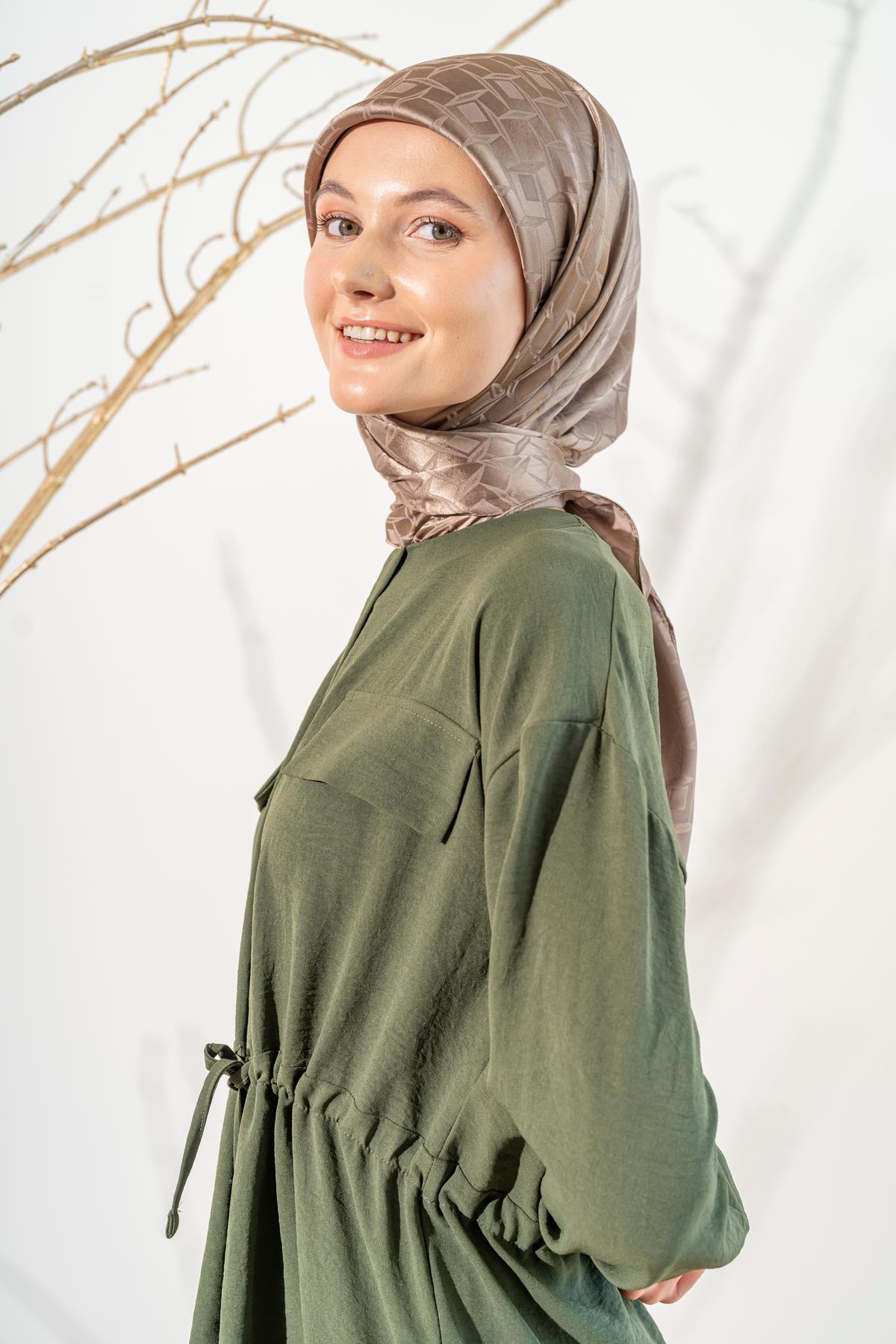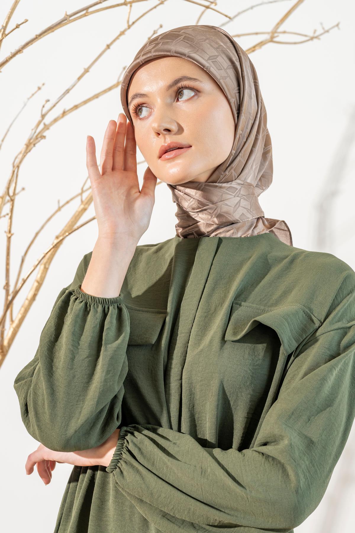 Kadın Mozaik Desenli Jakarlı Eşarp YAĞ YEŞİLİ