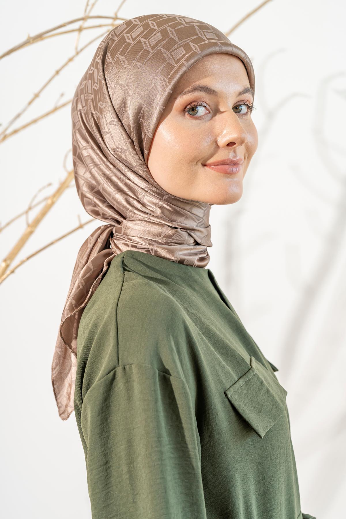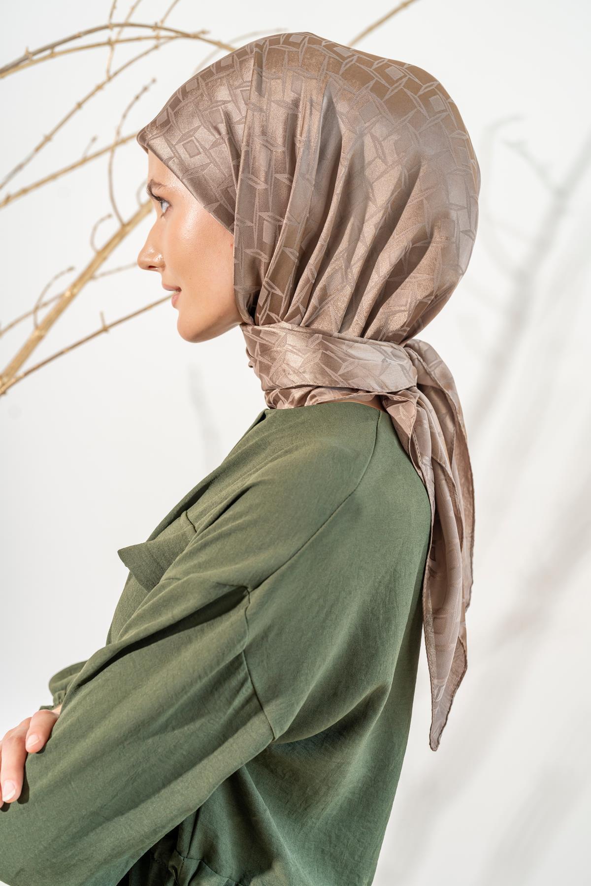 Kadın Mozaik Desenli Jakarlı Eşarp KOYU VİZON