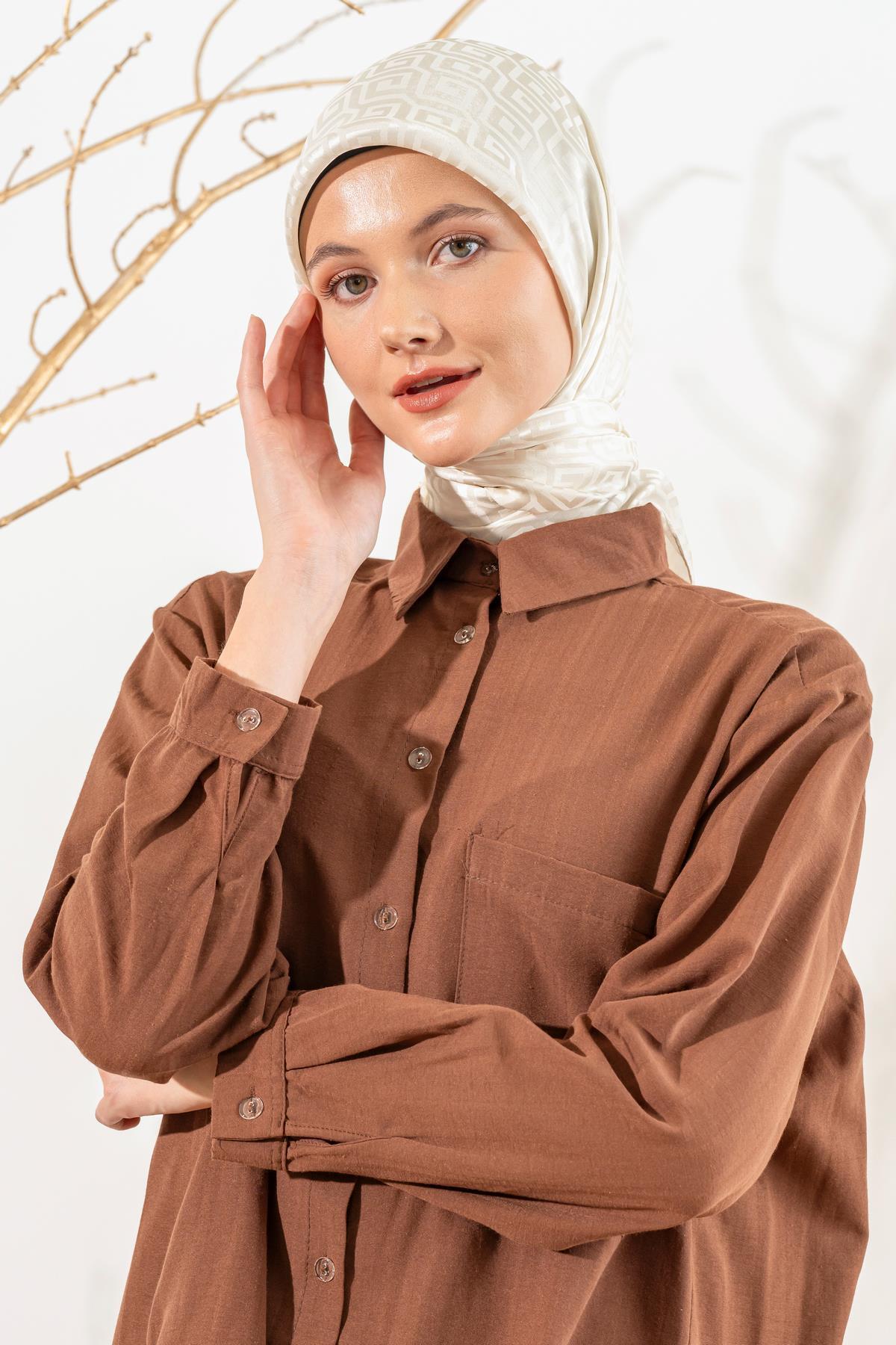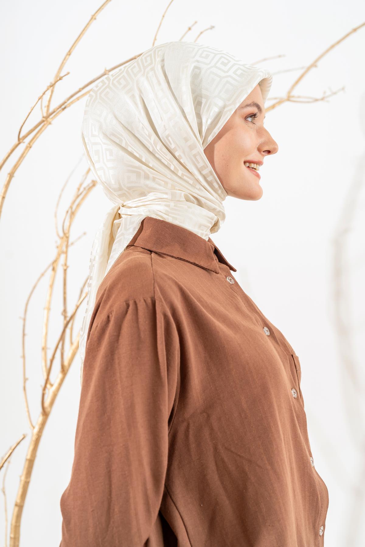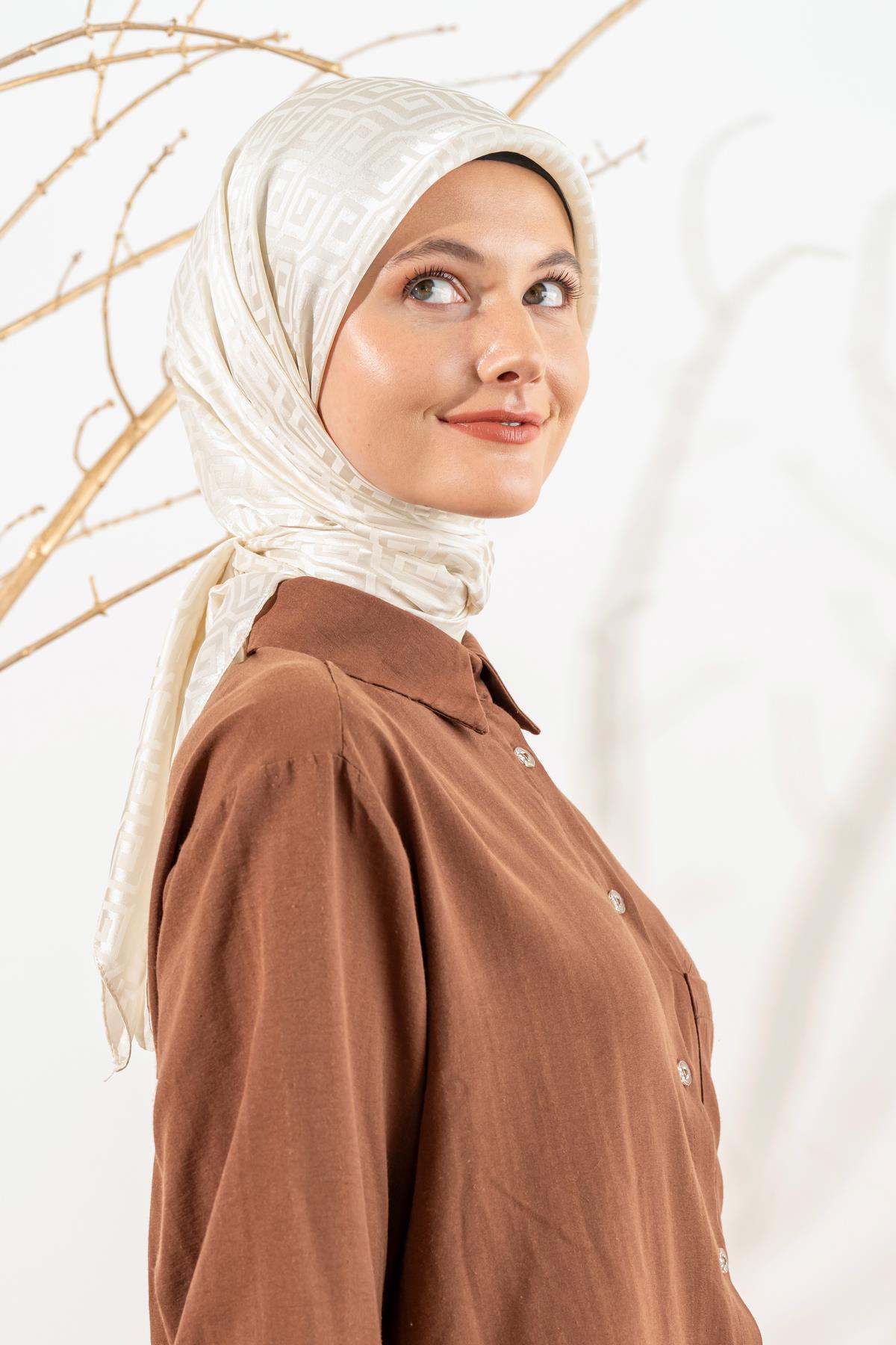 Kadın Mozaik Desenli Jakarlı Eşarp KREM