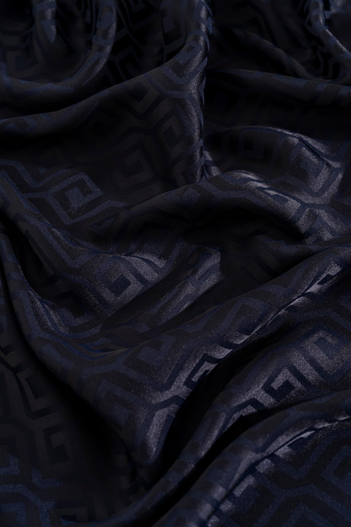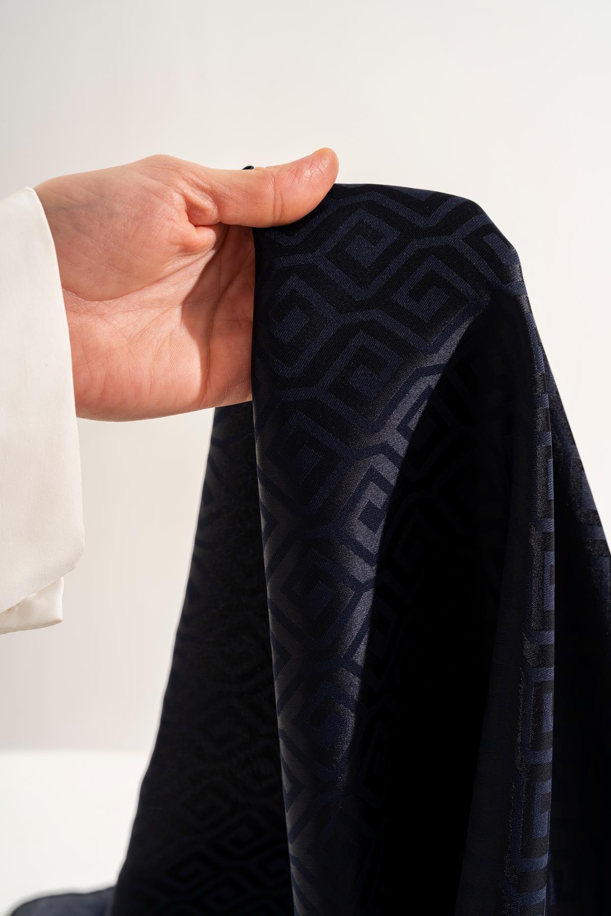Kadın Mozaik Desenli Jakarlı Eşarp LACİVERT