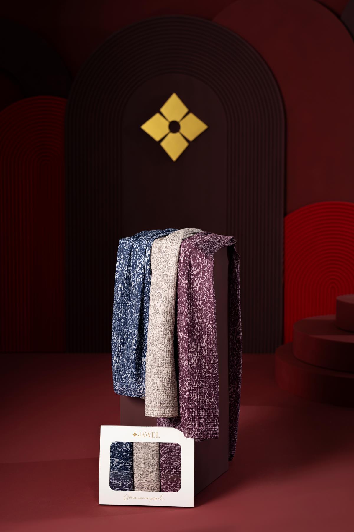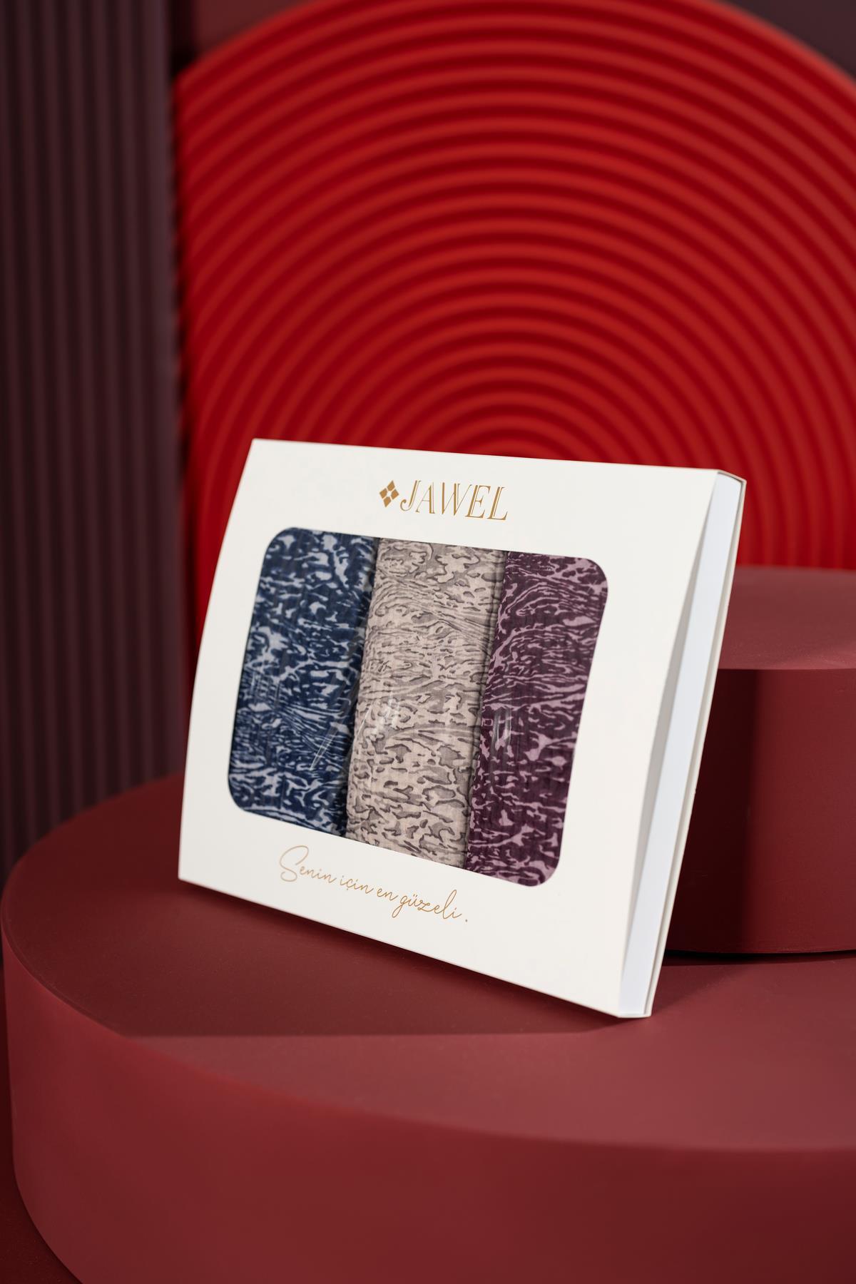 Kadın Müslin Şal Paketi Tyana (Lacivert-Krem-Mürdüm)