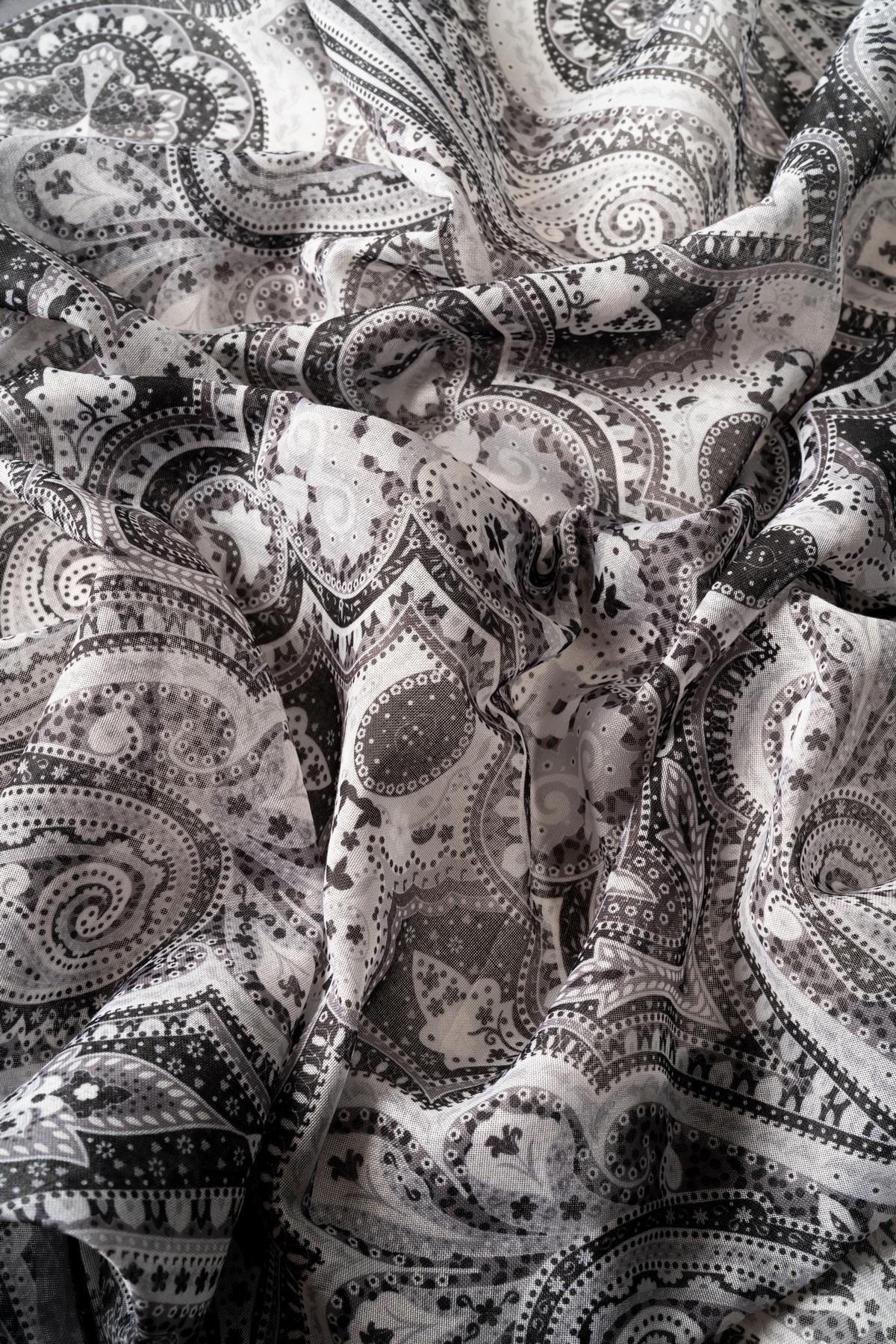 Kadın Etnik Desenli Soft Eşarp ANTRASİT