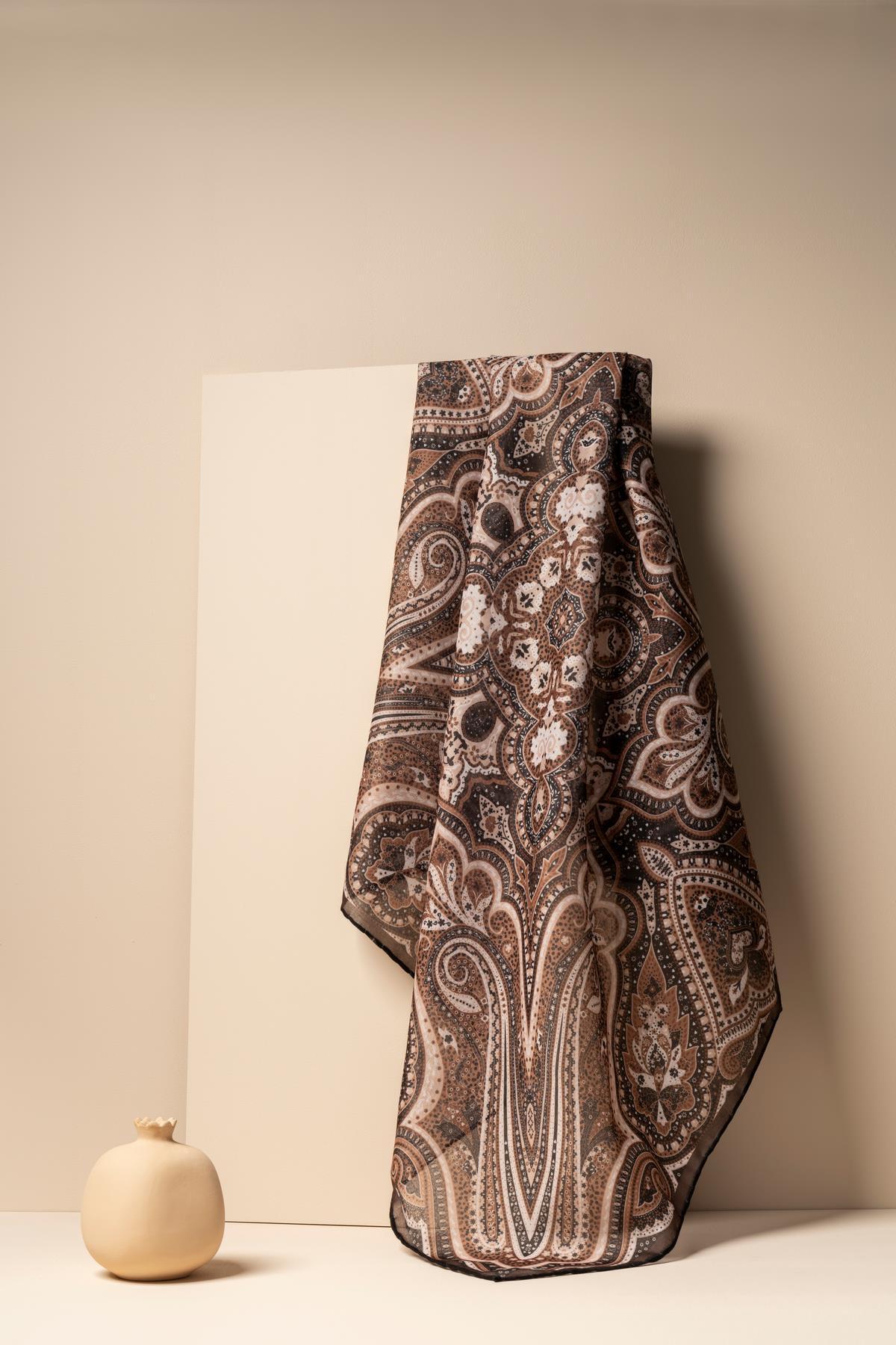 Kadın Etnik Desenli Soft Eşarp KAHVE