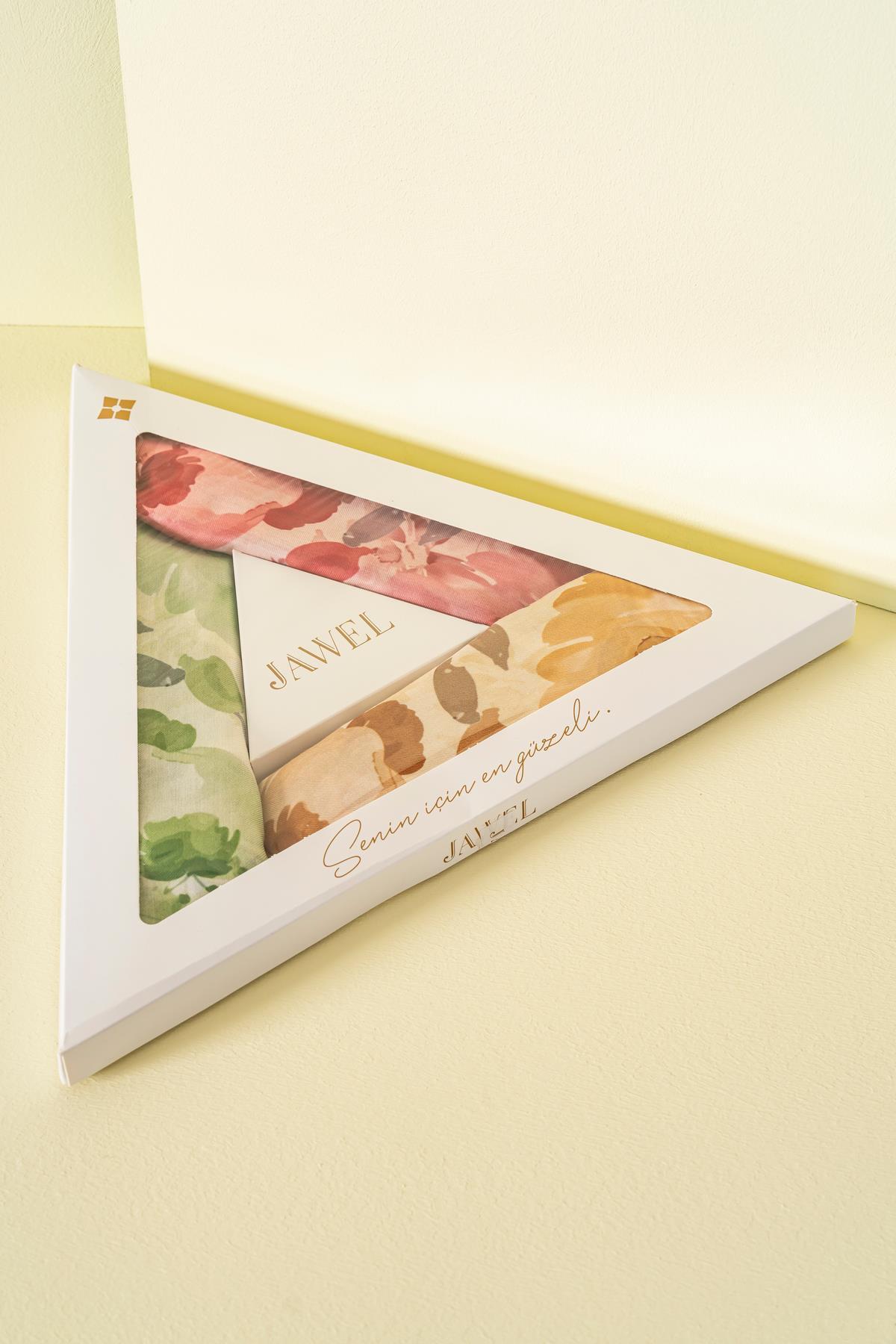 Kadın Peonia Soft Eşarp Paketi (Sarı-Krem Bordo-Yeşil)