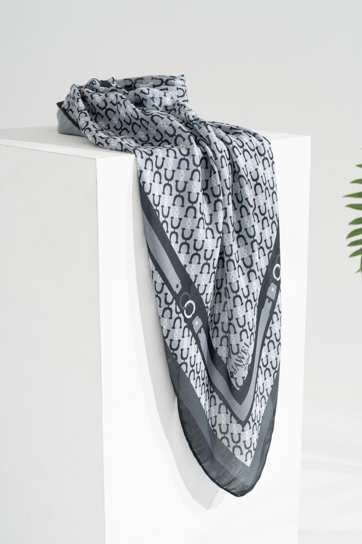 Kadın Tesettür Digital Desen 1 Soft Eşarp KOYU GRİ