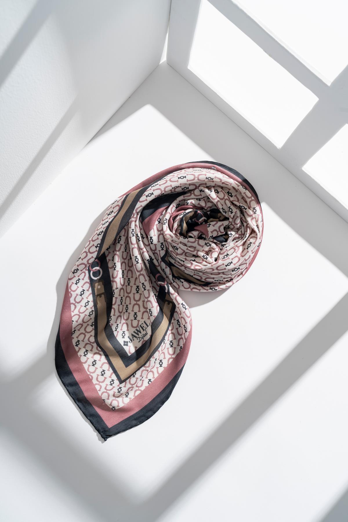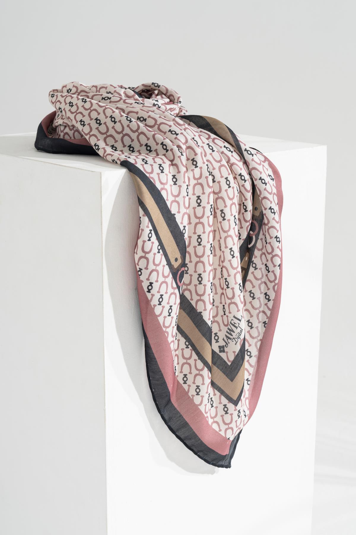 Kadın Tesettür Digital Desen 1 Soft Eşarp GÜL KURUSU