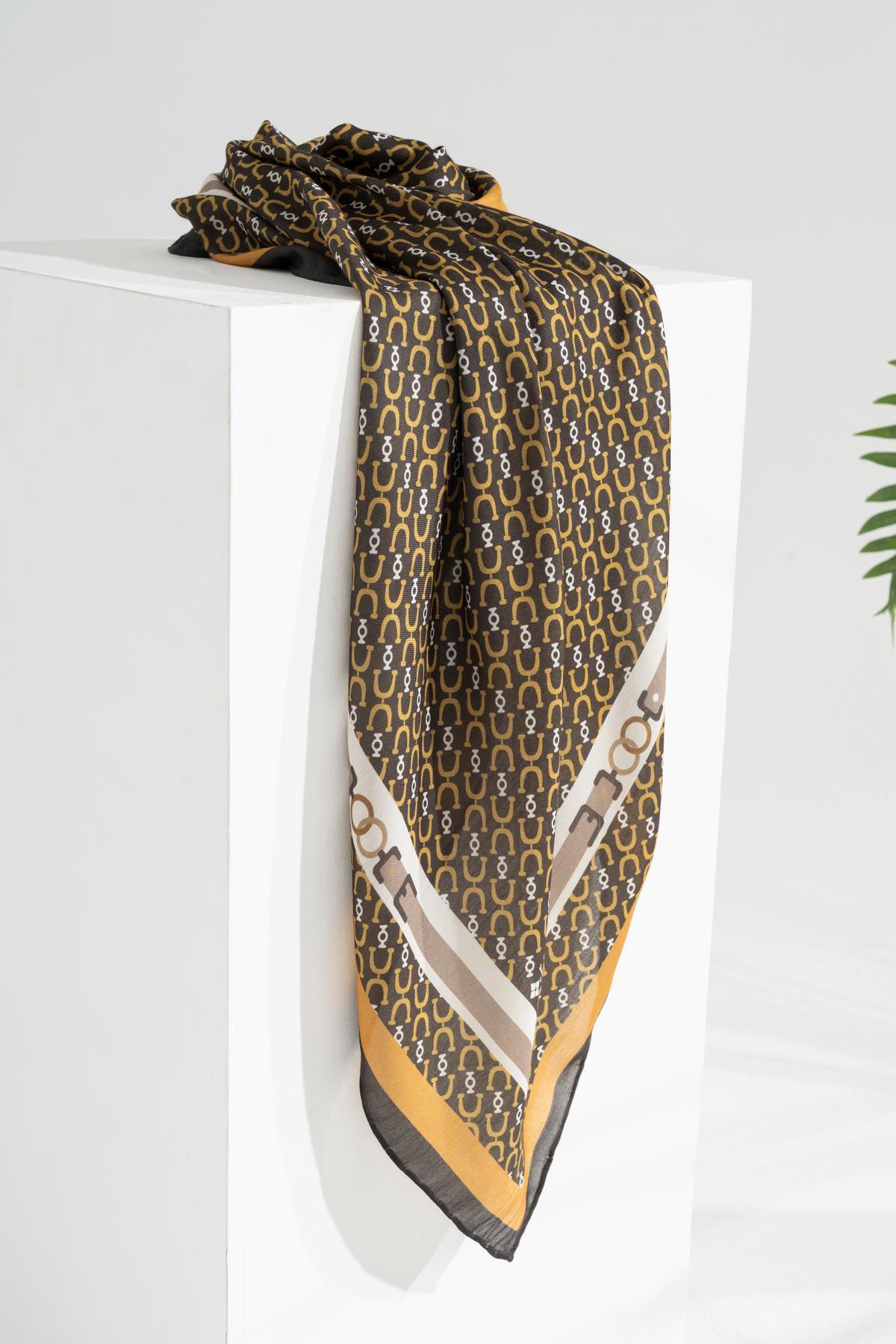 Kadın Tesettür Digital Desen 1 Soft Eşarp SİYAH KAHVE