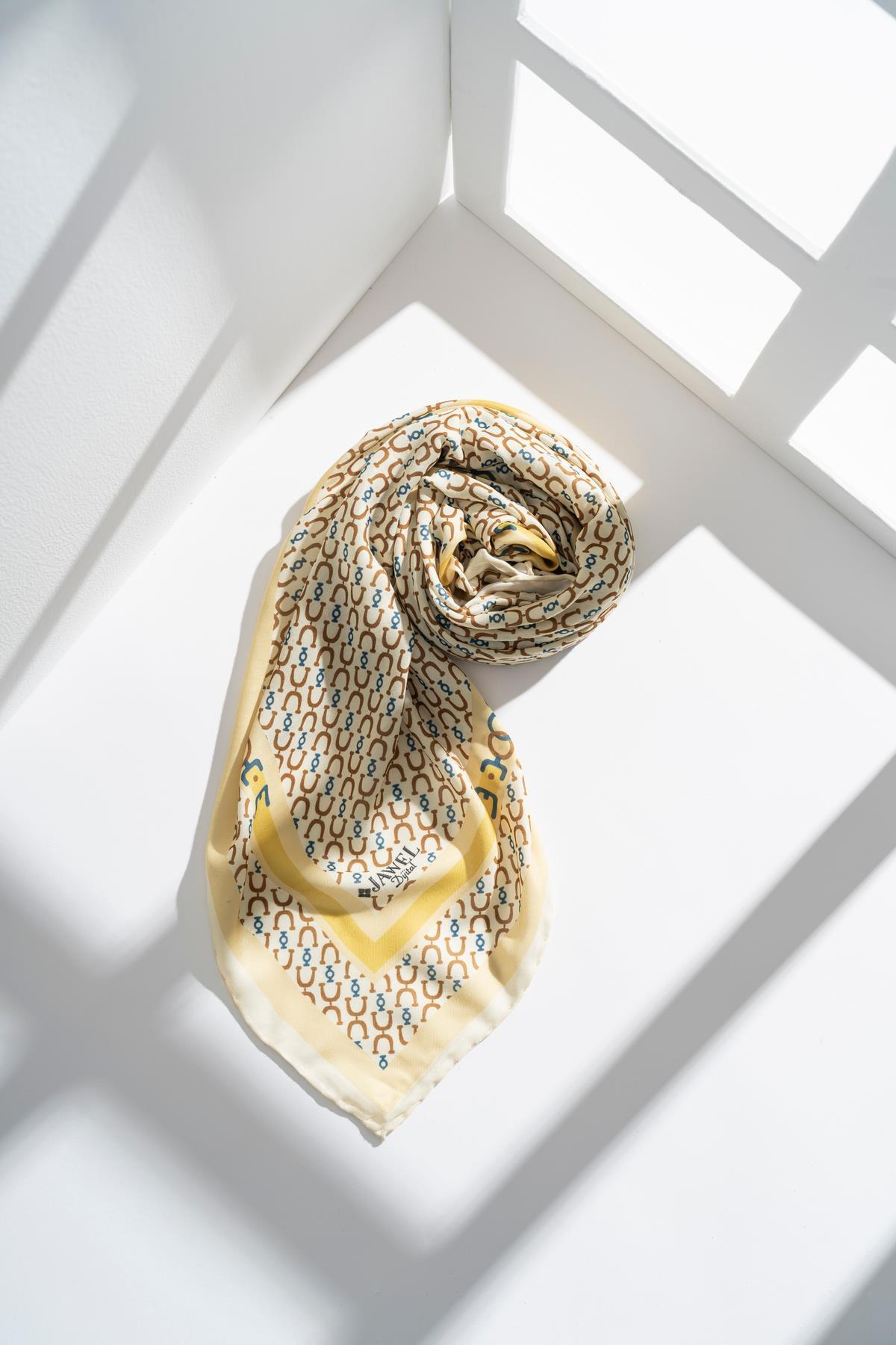Kadın Tesettür Digital Desen 1 Soft Eşarp SARI