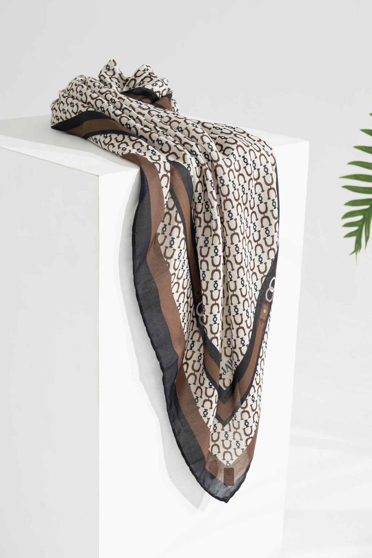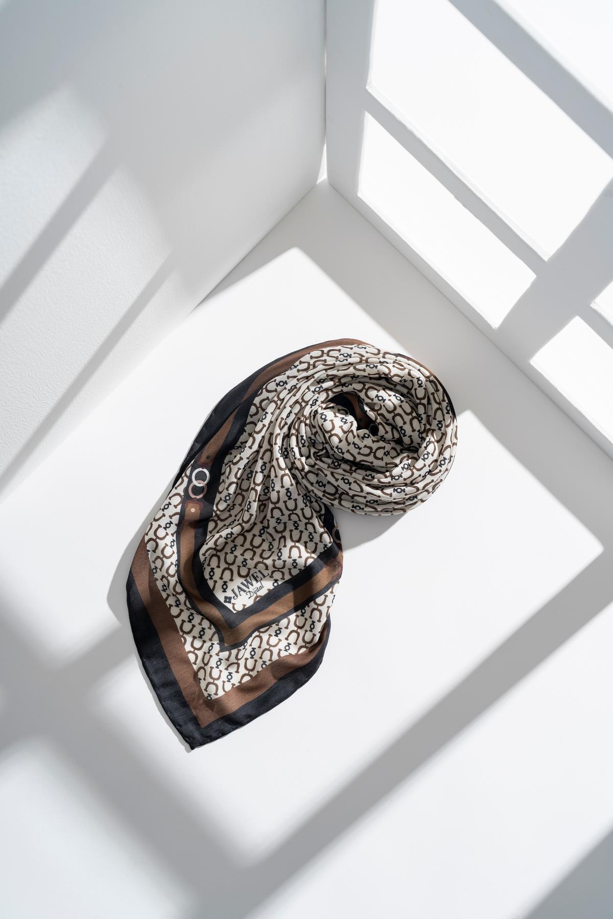 Kadın Tesettür Digital Desen 1 Soft Eşarp SİYAH KAHVE