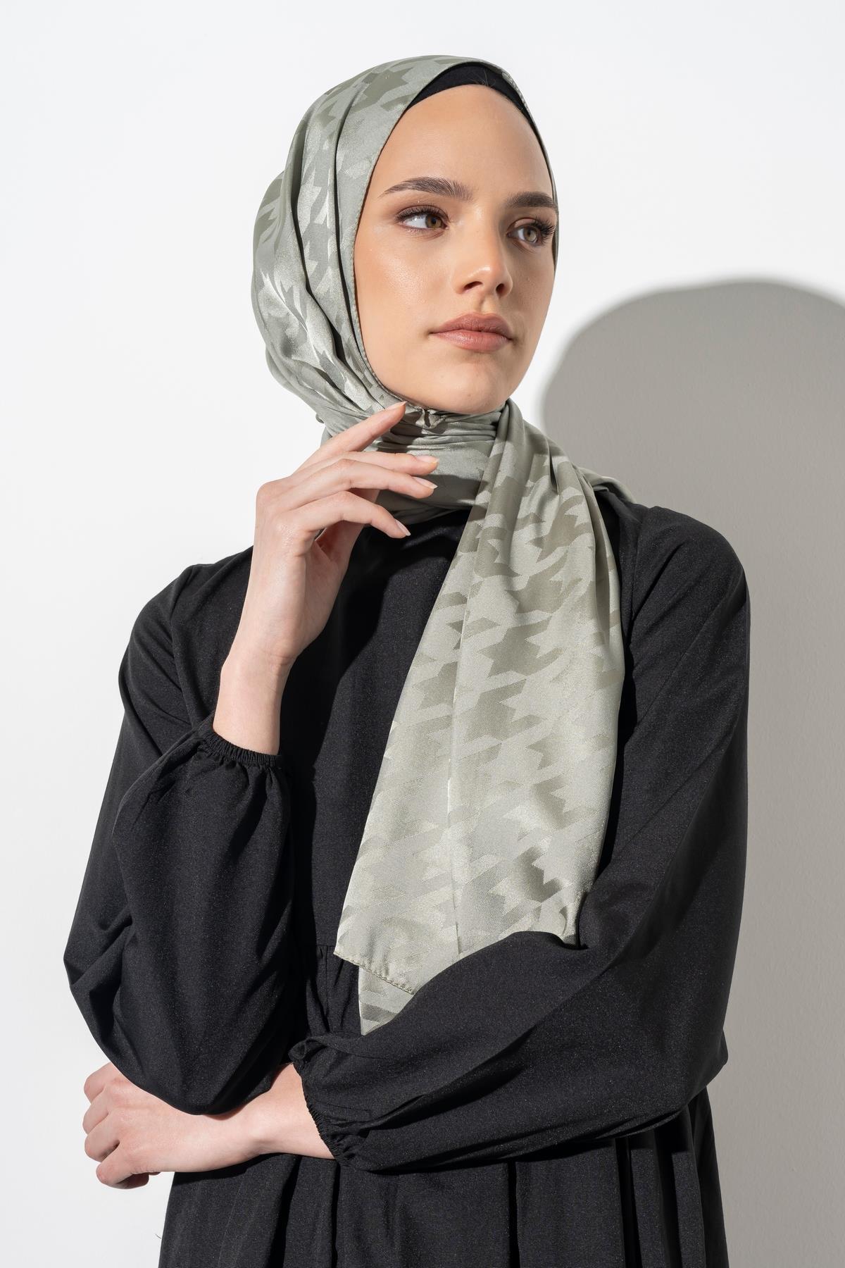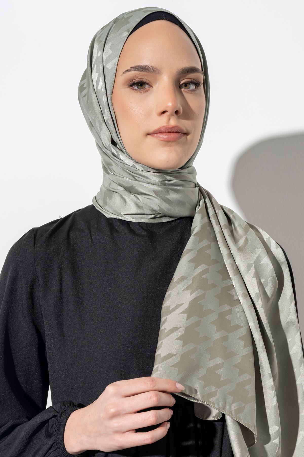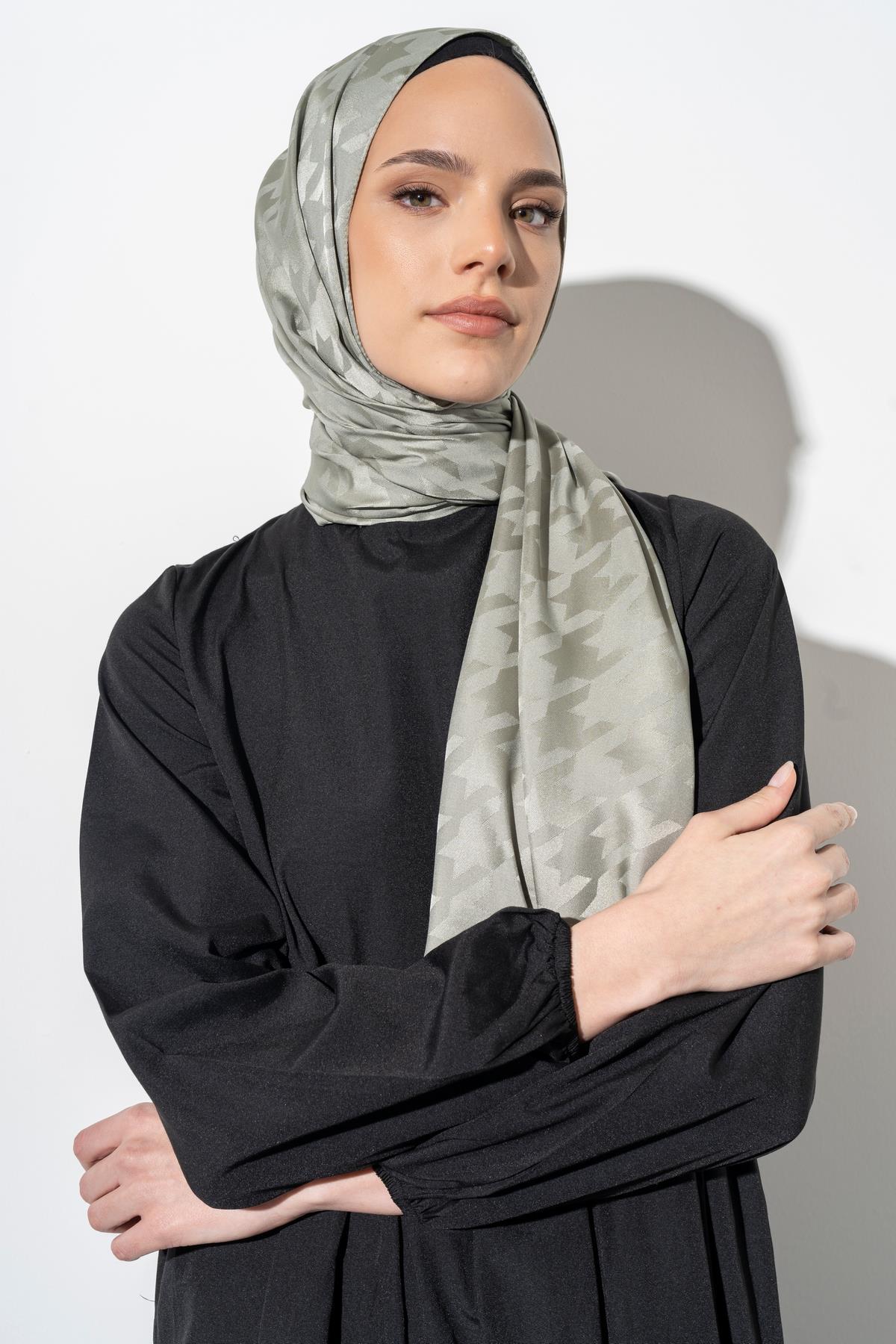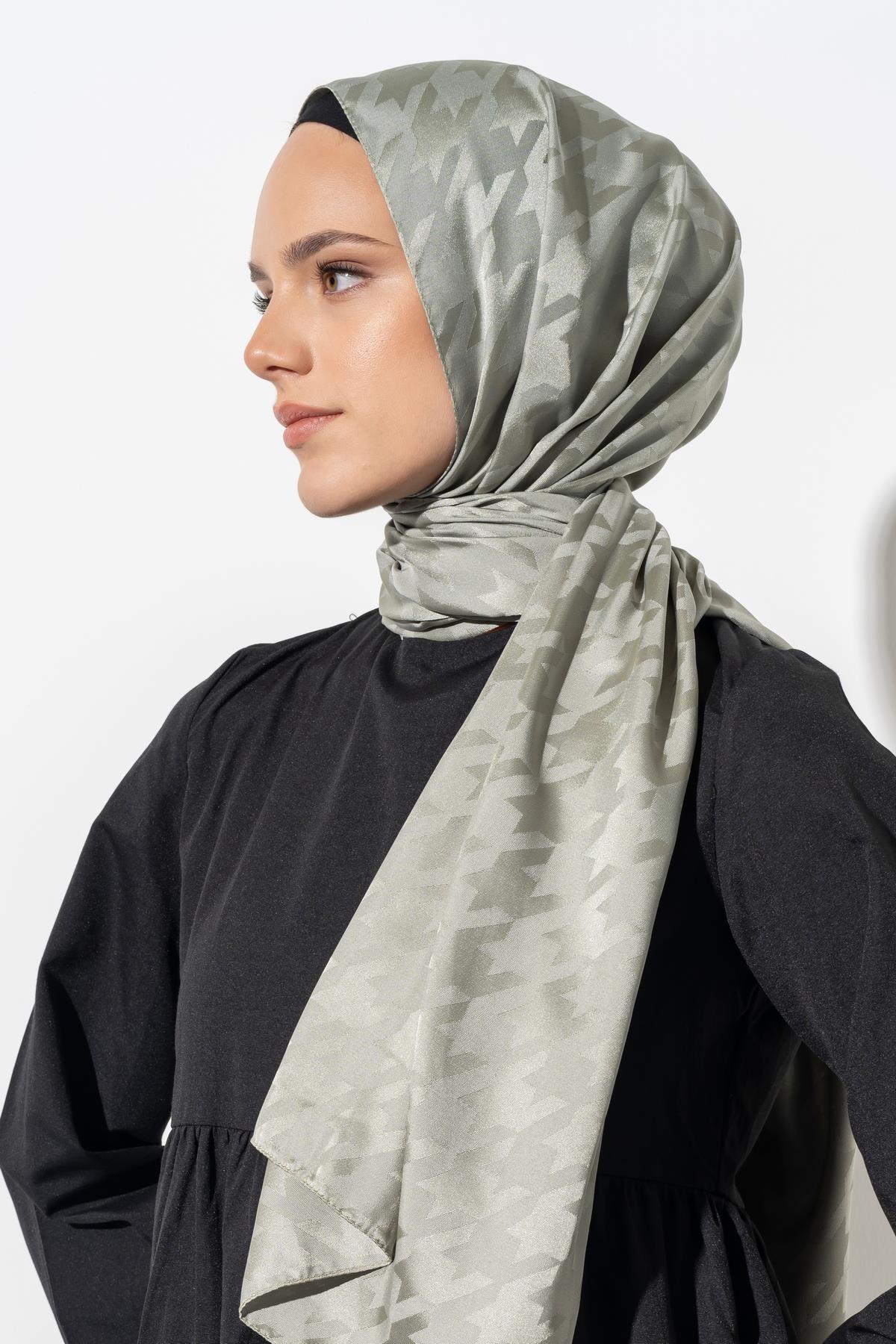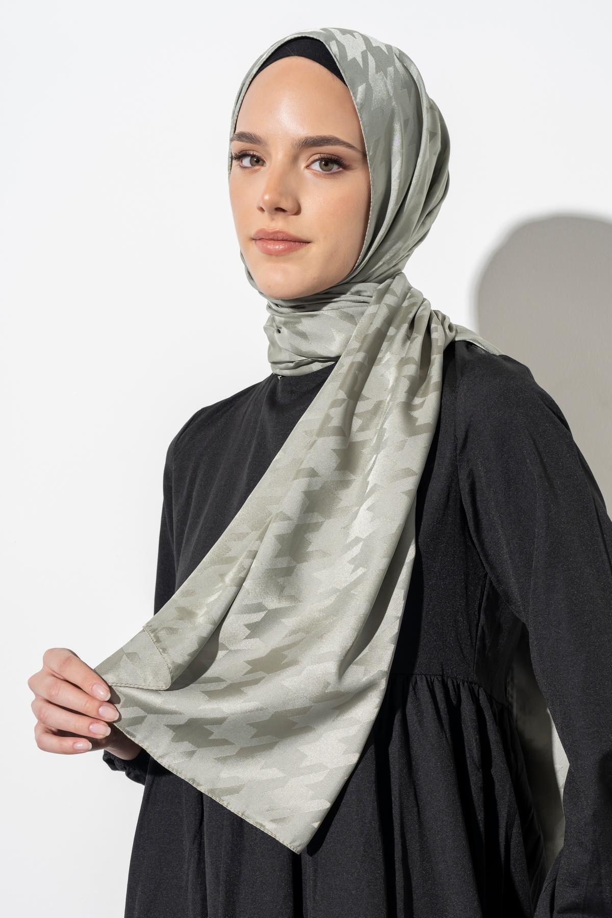 Kadın Tesettür Jakarlı Büyük Desen Kazayağı Şal GÜMÜŞ GRİ
