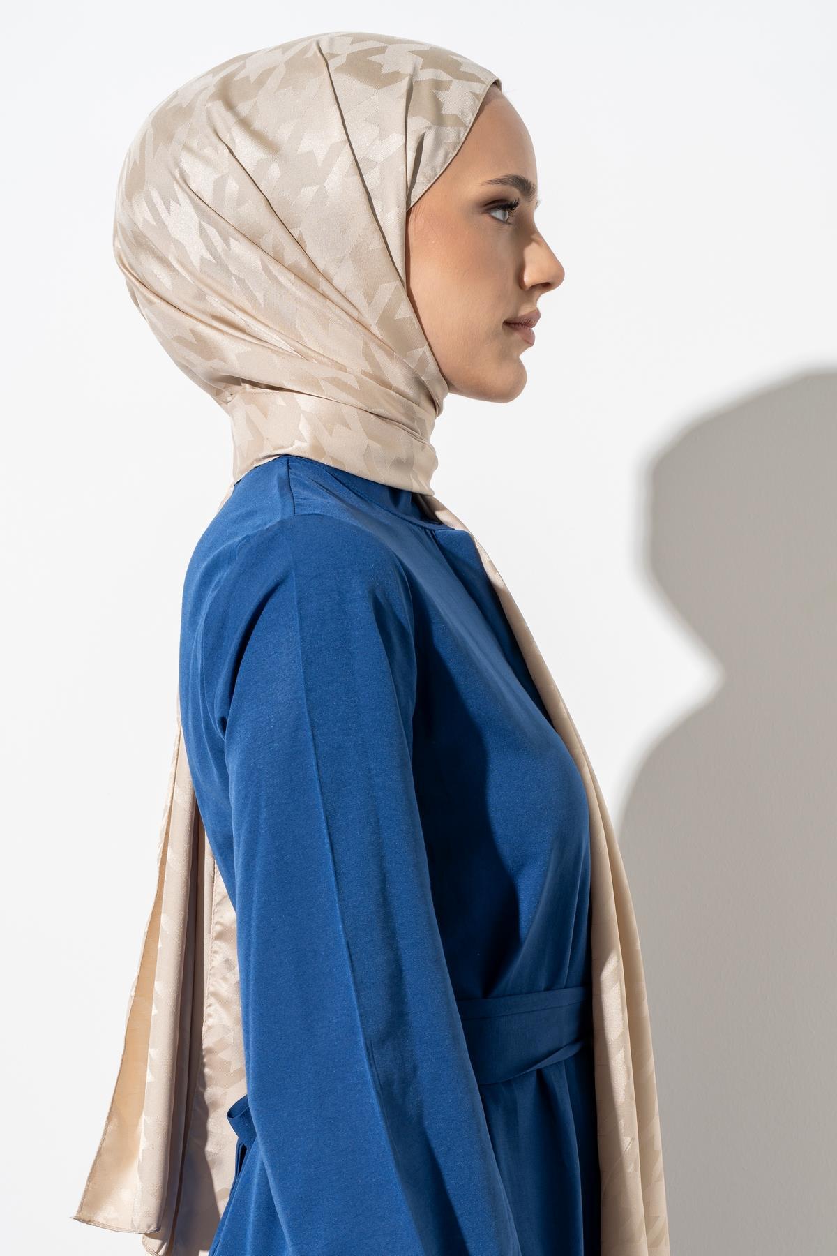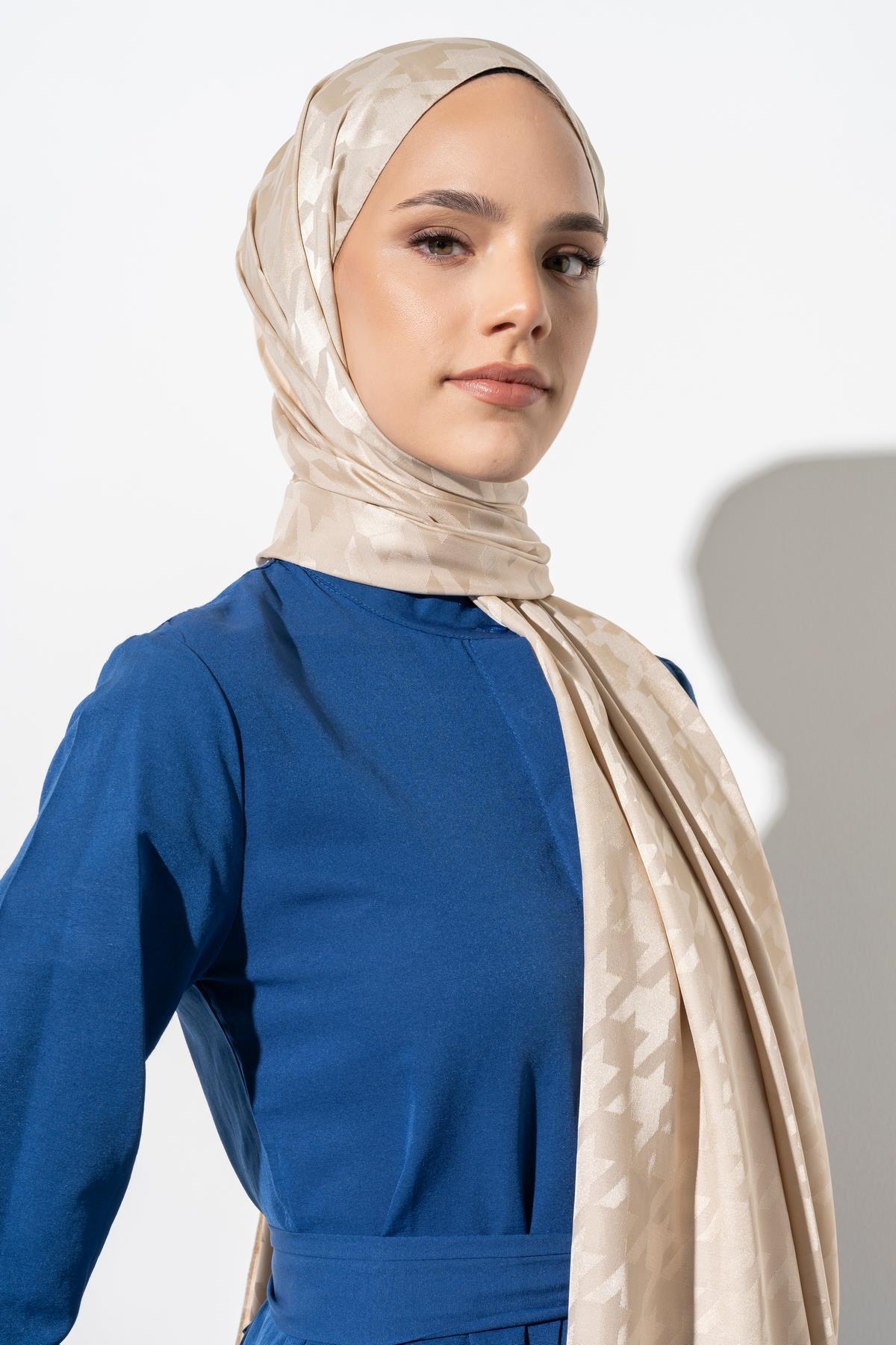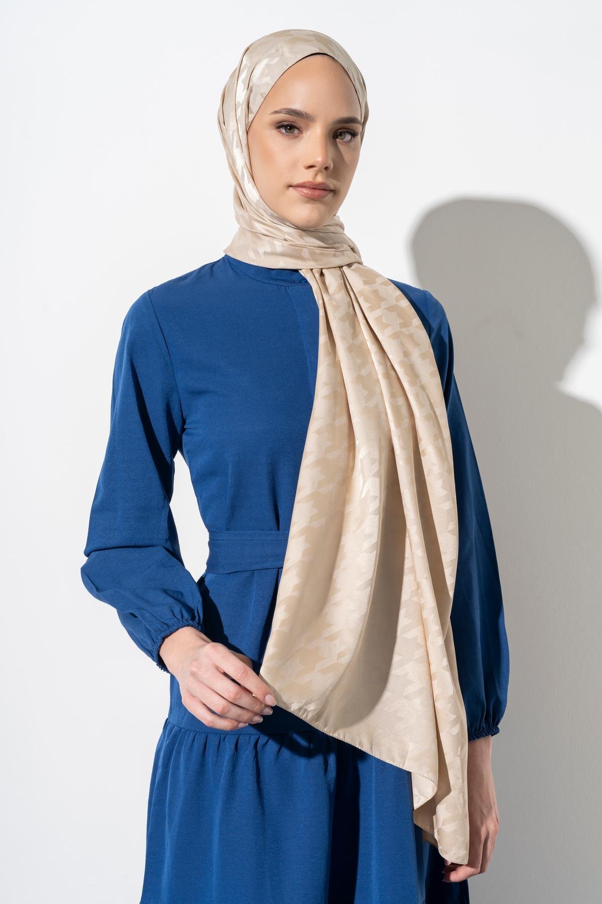 Kadın Tesettür Jakarlı Büyük Desen Kazayağı Şal BEJ
