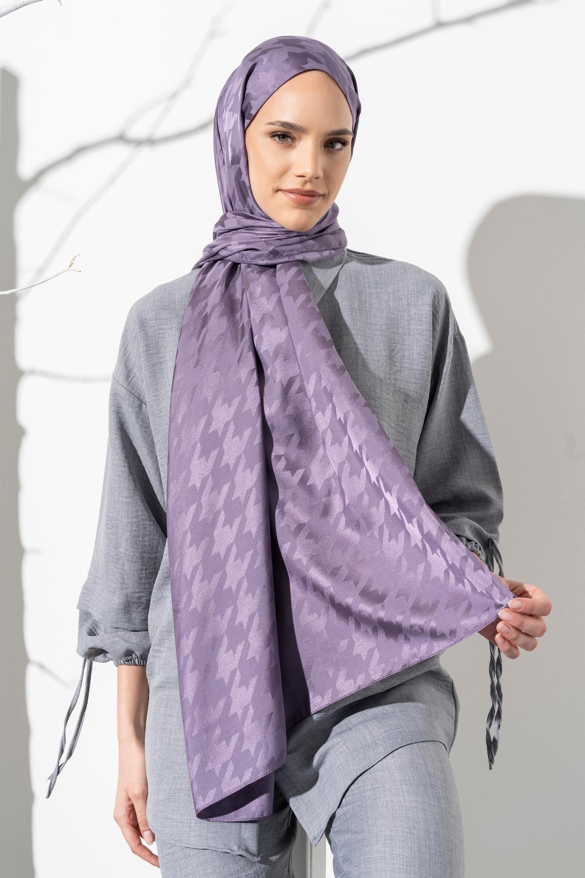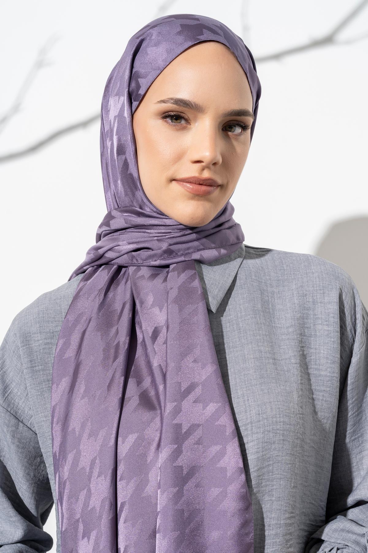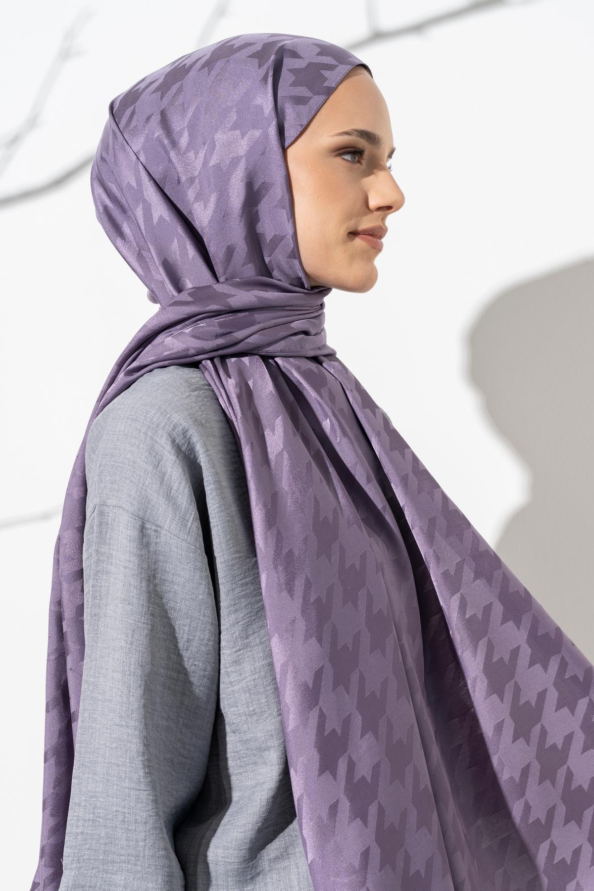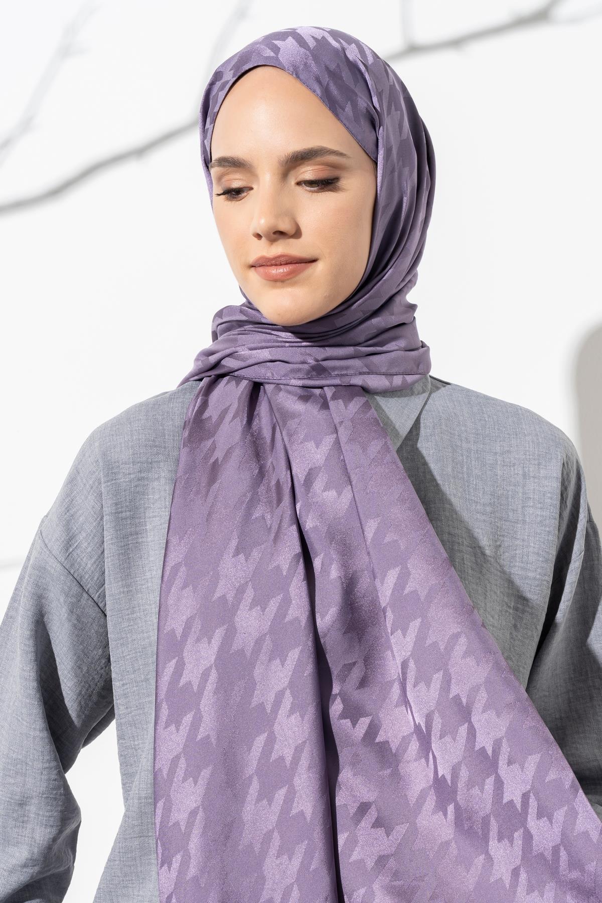 Kadın Tesettür Jakarlı Büyük Desen Kazayağı Şal LİLA