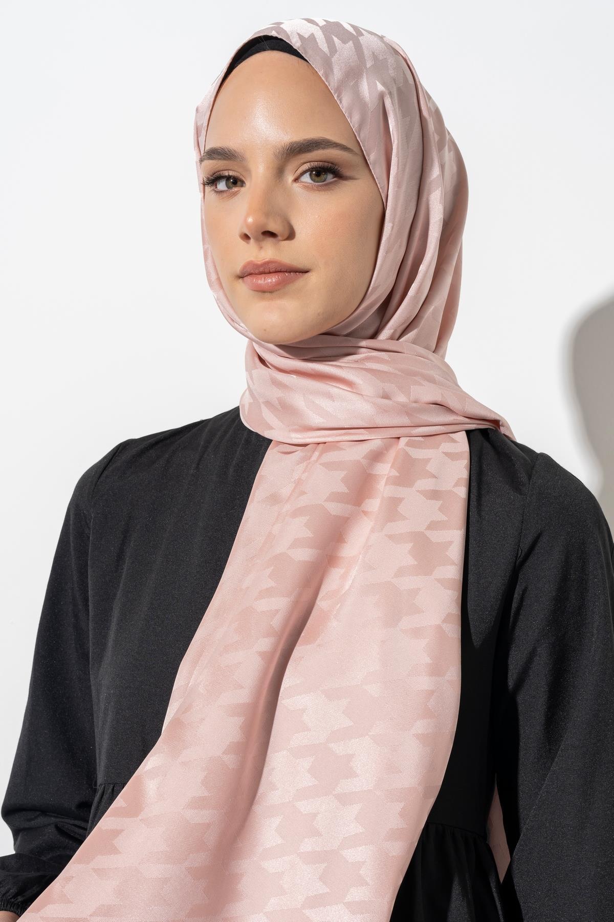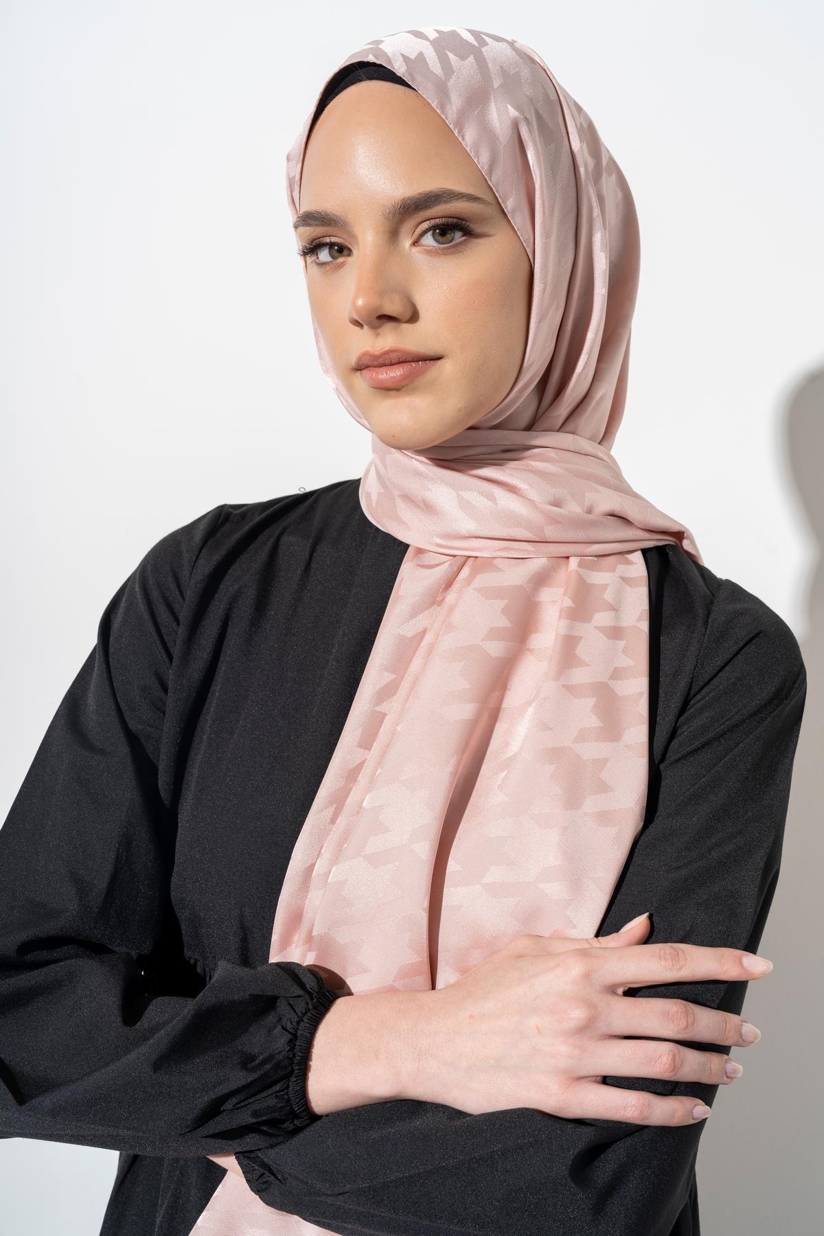 Kadın Tesettür Jakarlı Büyük Desen Kazayağı Şal PEMBE
