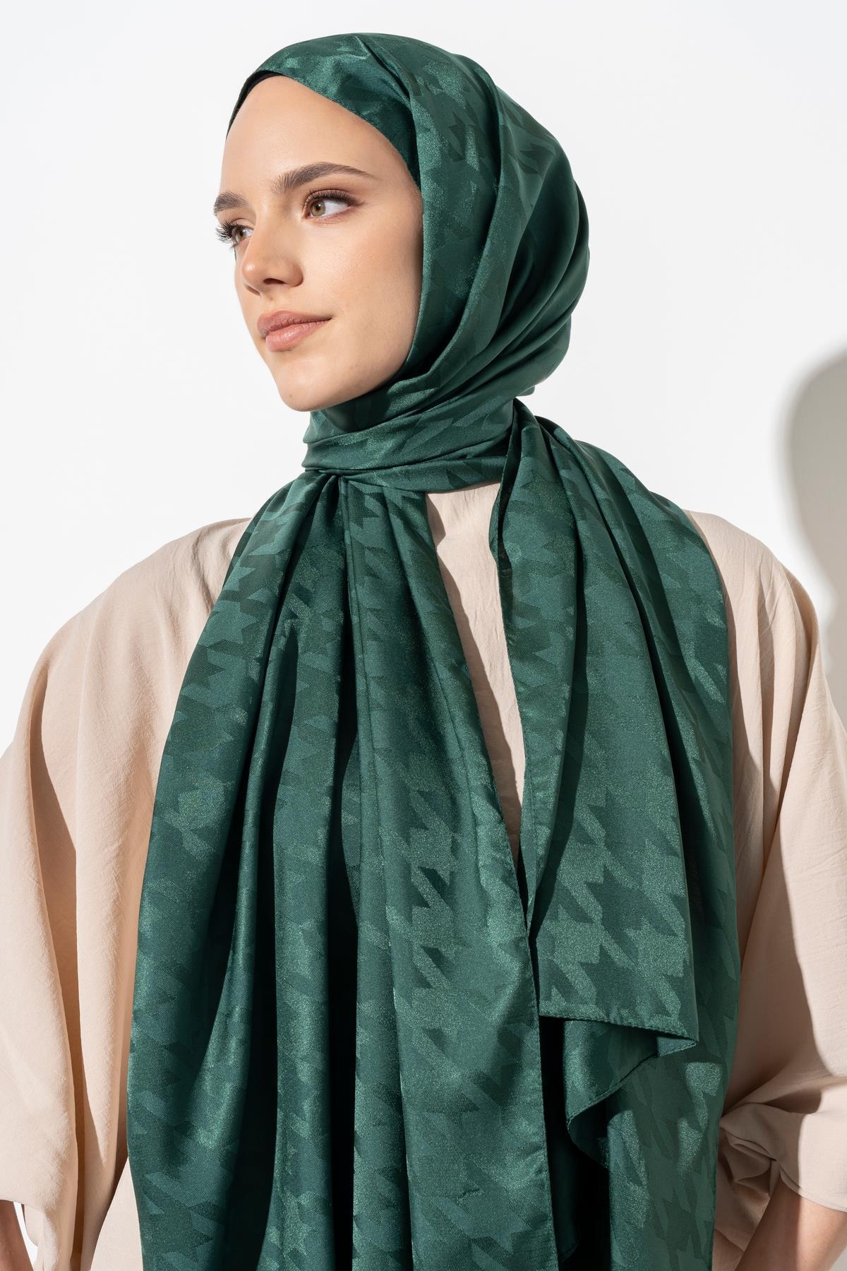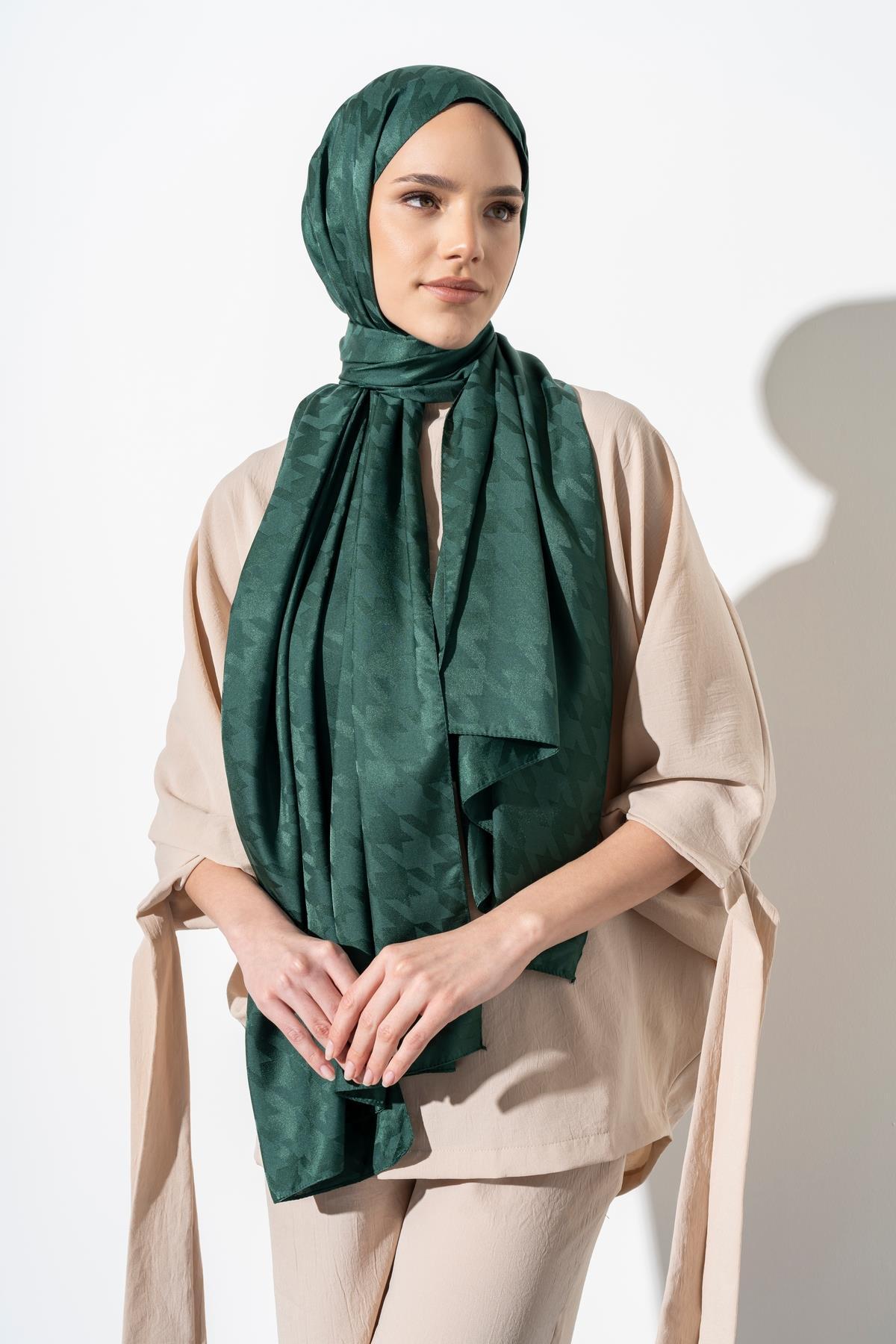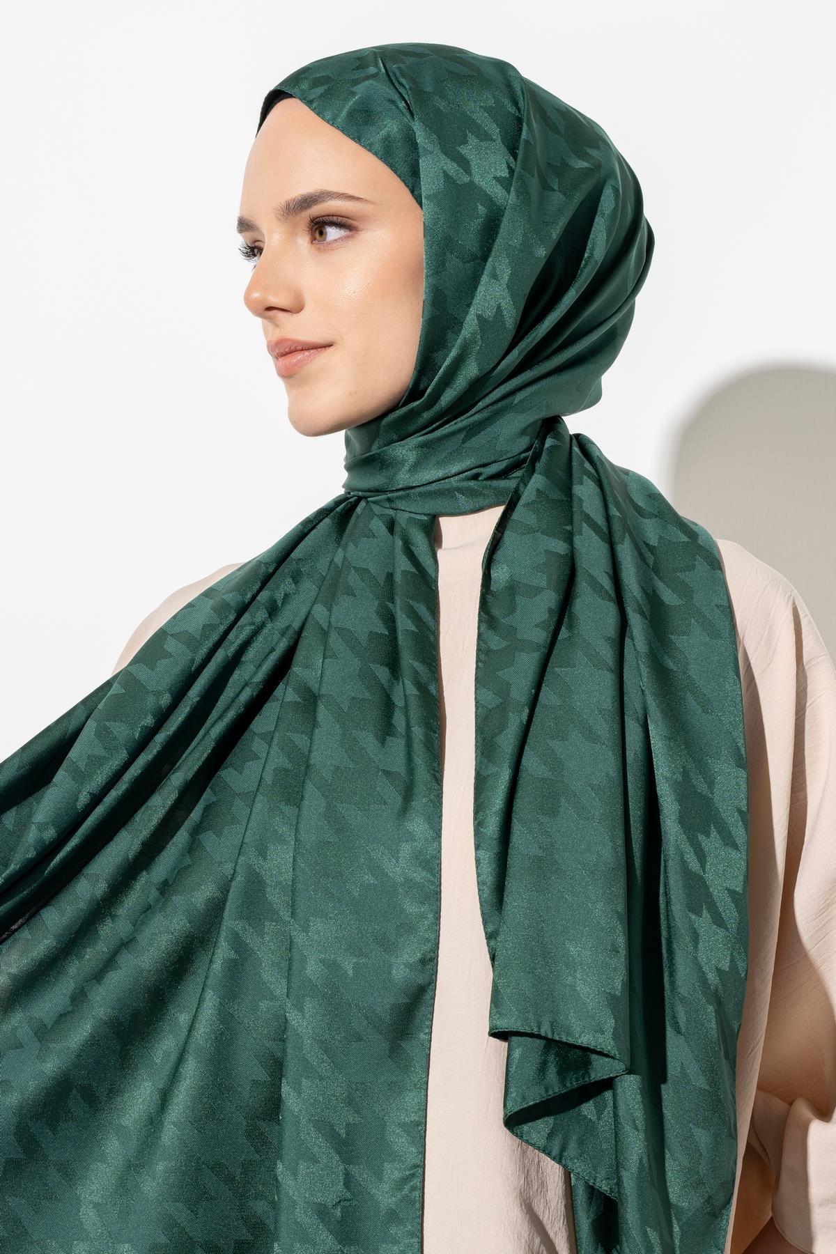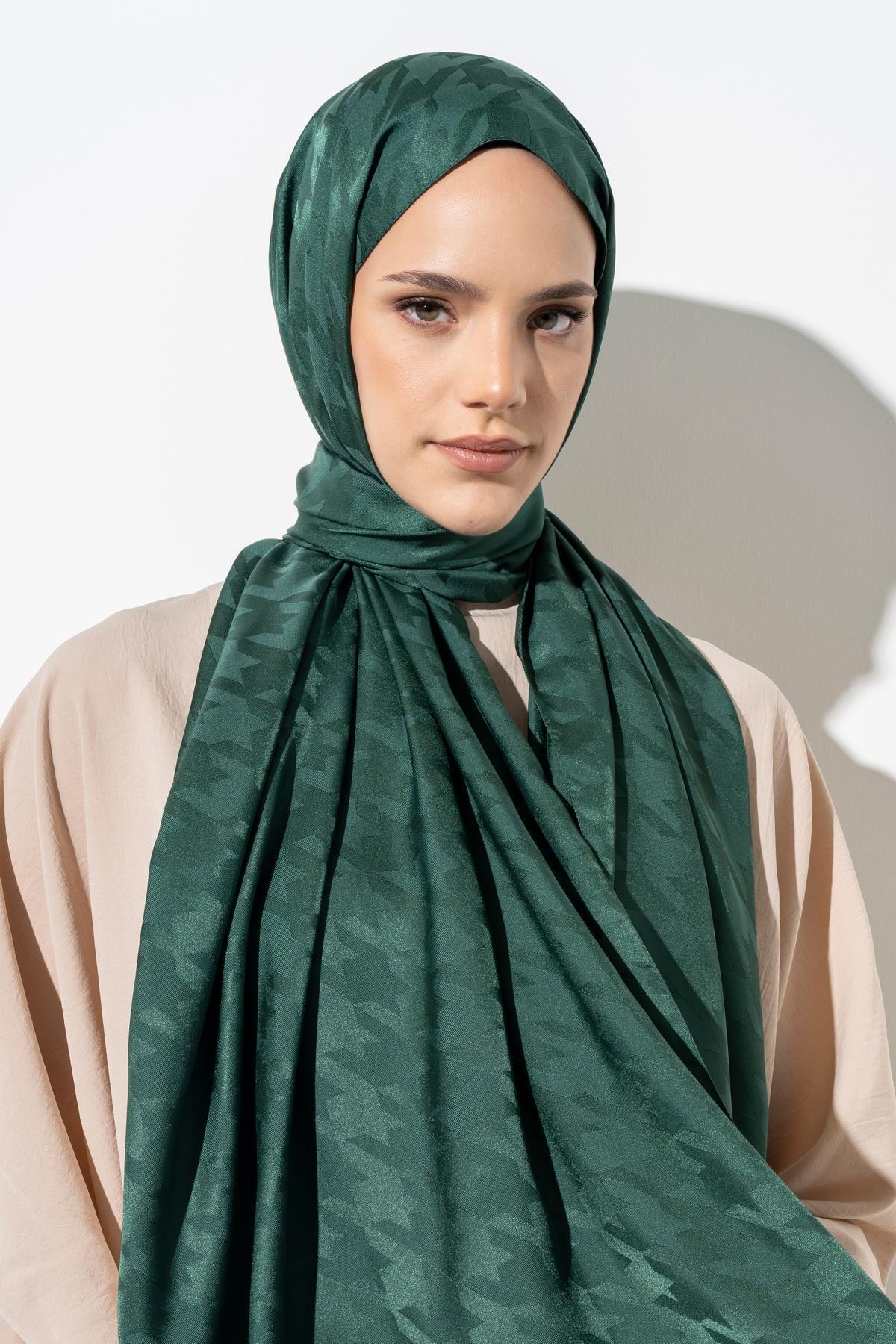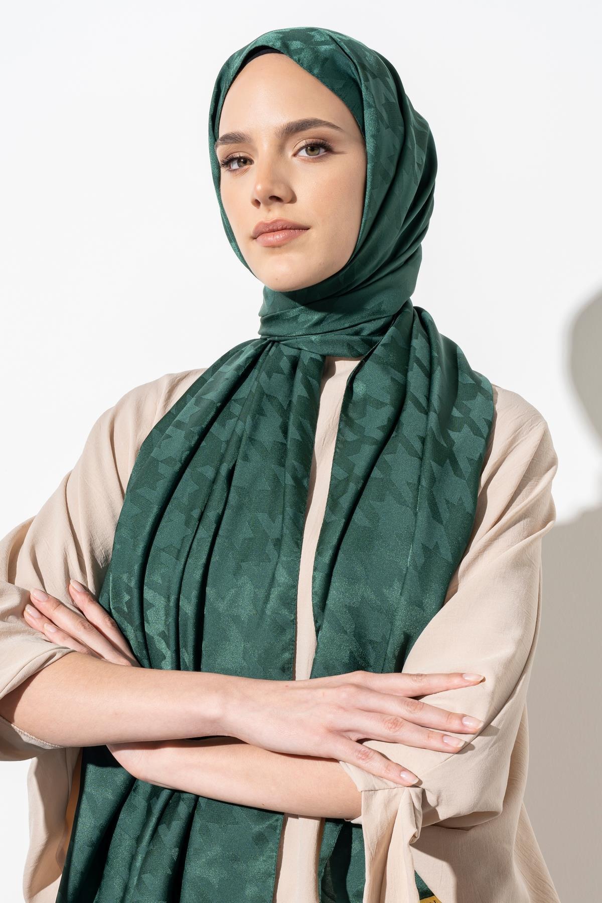 Kadın Tesettür Jakarlı Büyük Desen Kazayağı Şal ZÜMRÜT