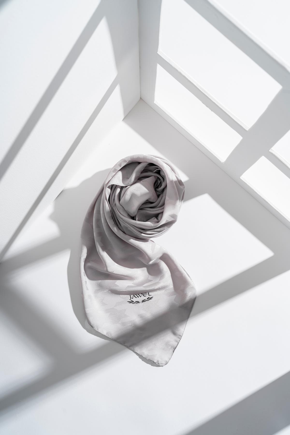 Kadın Tesettür Jakarlı Kazayağı Eşarp 1 GÜMÜŞ GRİ