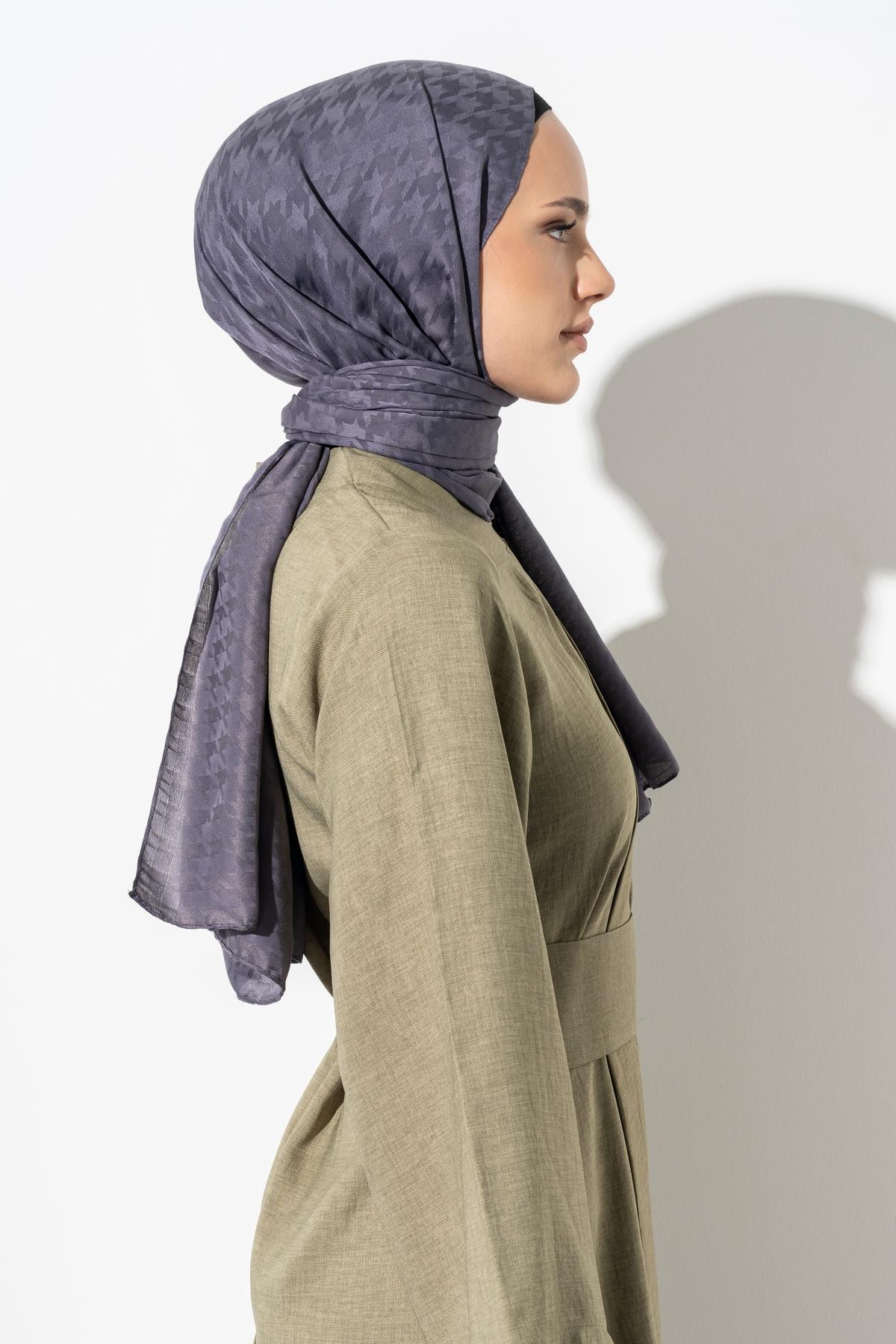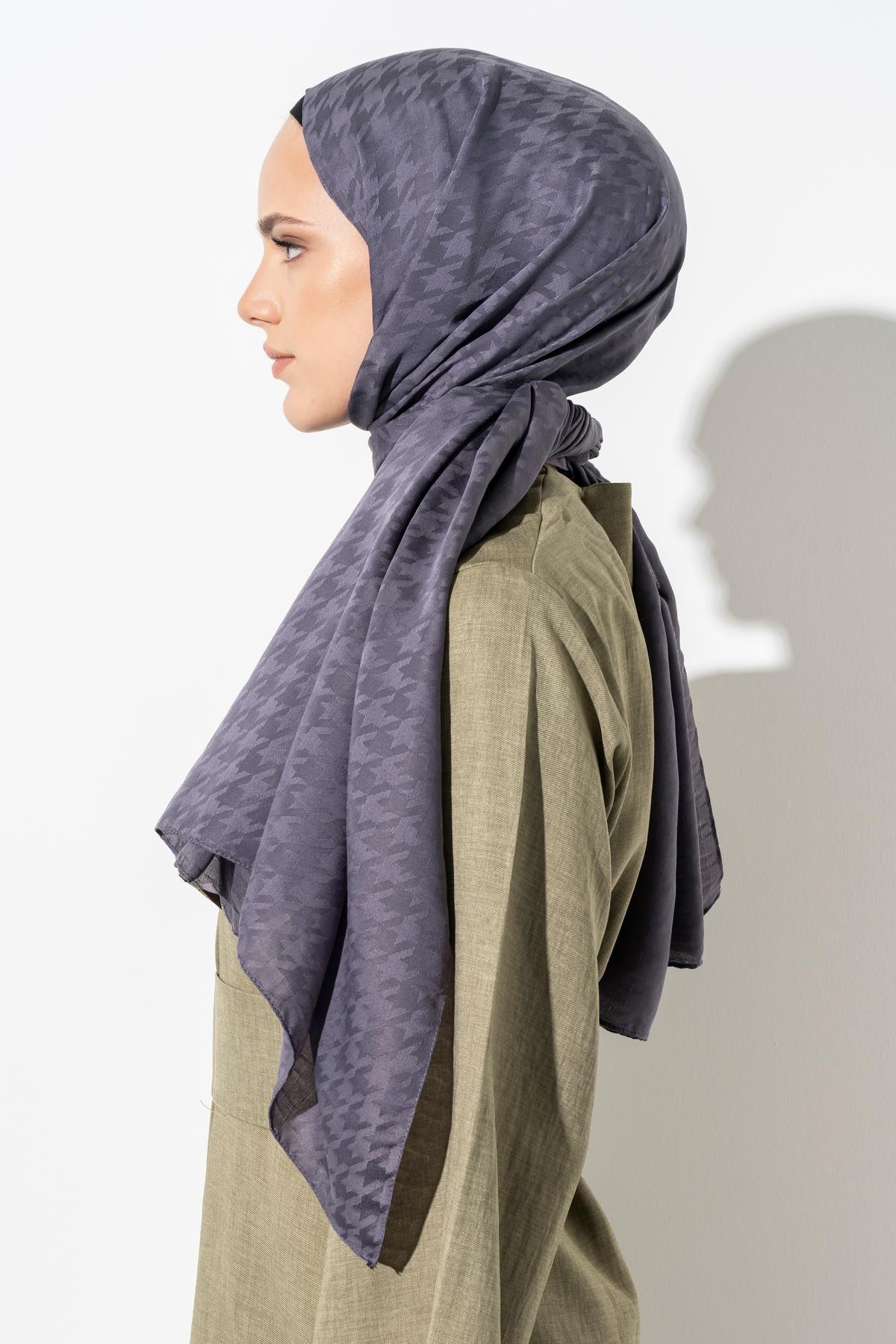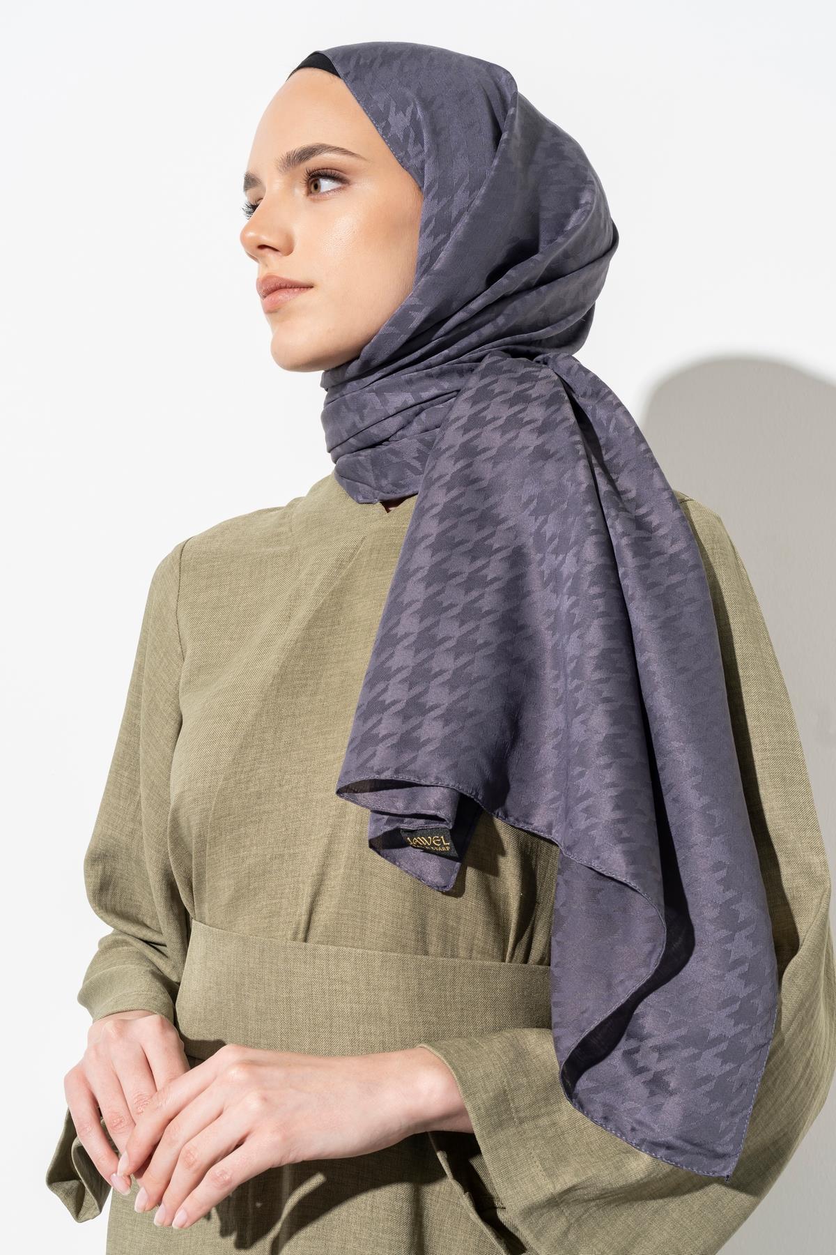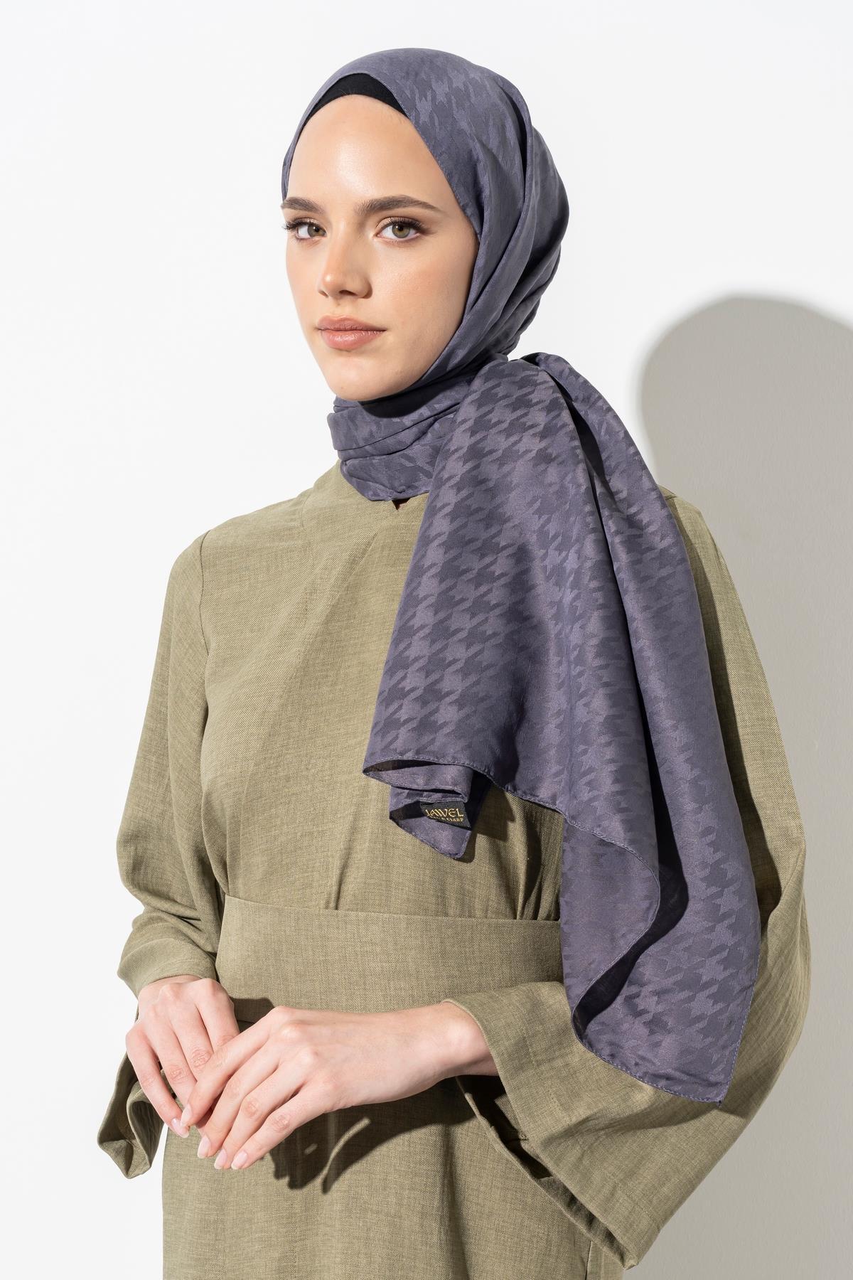 Kadın Tesettür Jakarlı Küçük Desen Kazayağı Şal ANTRASİT